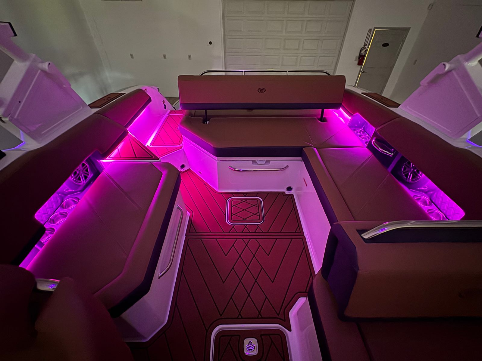 The Cobalt R6 is as practical as it is luxurious. Its generous length provides ample storage for gear, water toys, and personal items, keeping the deck clutter-free and organized. The efficient hull design and responsive handling make docking and maneuvering a breeze, even in tight spaces. The Battery Maintainer/Charger adds convenience by ensuring your boat is always ready for spontaneous adventures, while the durable materials and finishes are built to withstand the rigors of regular use.Whether you’re planning a day of water skiing, a sunset cruise, or a weekend getaway, the R6 adapts to your needs with ease. The comfortable seating and protective Bimini top make it ideal for long days on the water, while the advanced electronics and lighting systems enhance safety and enjoyment in all conditions.
