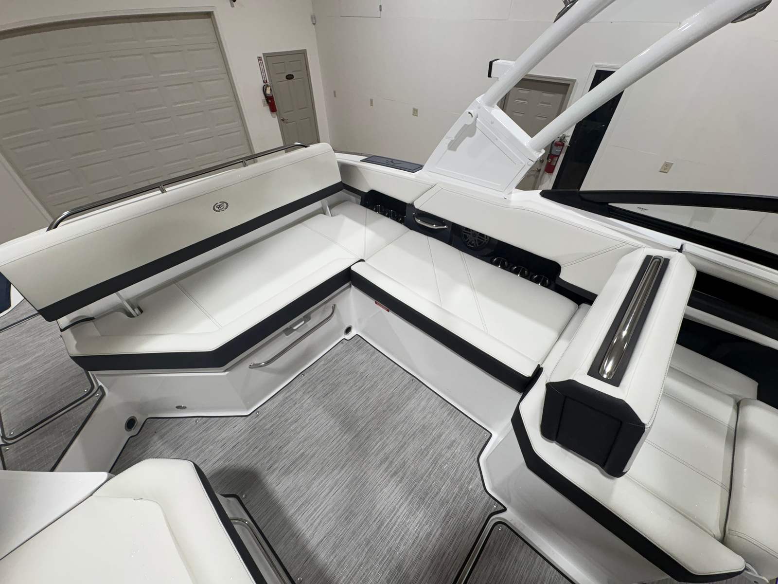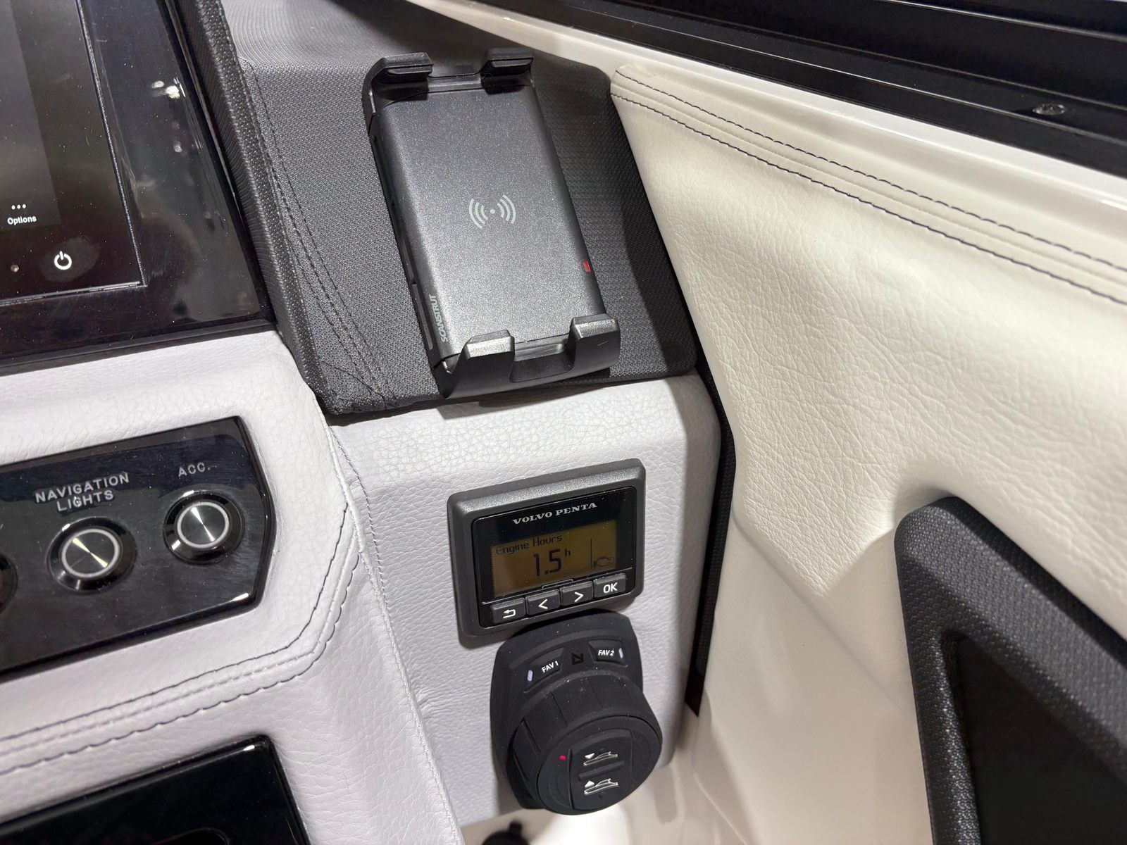The Cobalt R6 is designed with practicality in mind, making ownership as enjoyable as the time spent on the water. The folding arch and mooring cover simplify storage and protection, while the efficient Volvo V8 engine helps you make the most of every gallon of fuel. The stainless steel docking lights and advanced navigation systems make docking and maneuvering in tight spaces a breeze, giving you peace of mind in any situation.The durable Seagrass flooring is easy to clean and maintain, ensuring your boat stays looking its best season after season. The customizable LED lighting adds a personal touch to your boating experience, whether you are hosting a sunset cruise or an evening celebration.