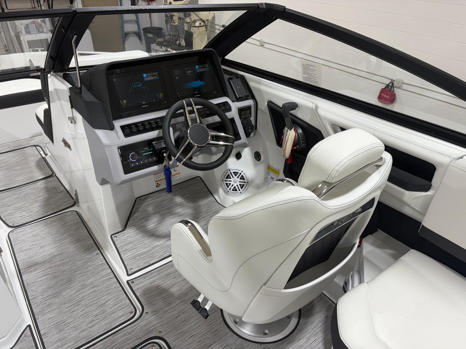 The 2026 Cobalt R6 is loaded with special features that elevate your time on the water. The folding White Arch, E2, with Captain/Navy Bimini, offers both style and practical shade, while the stainless steel docking lights add a touch of elegance and improve visibility during evening returns to the dock. The floor covering in Silver Ash Seagrass provides a comfortable, non-slip surface that is both stylish and easy to maintain.Step into the cockpit and you will find a state-of-the-art Glass Cockpit with dual Garmin 8610 displays, putting navigation, engine data, and entertainment controls at your fingertips. The LED interior accent lighting, with customizable R/G/B colors, creates a vibrant atmosphere for evening cruises or dockside gatherings. The mooring cover helps protect your investment when the boat is not in use, and the folding arch adds versatility for storage and transport.