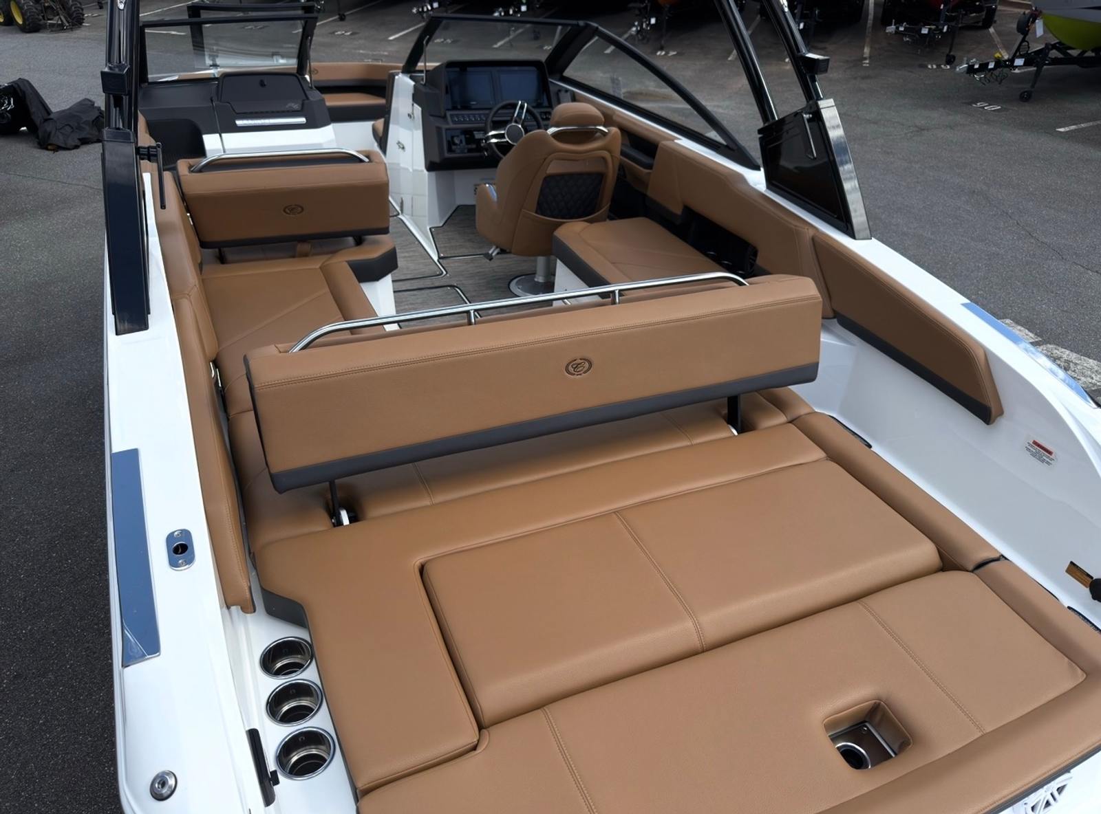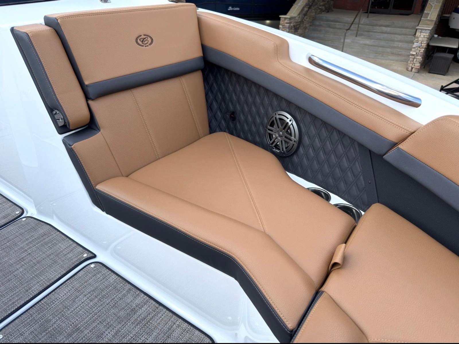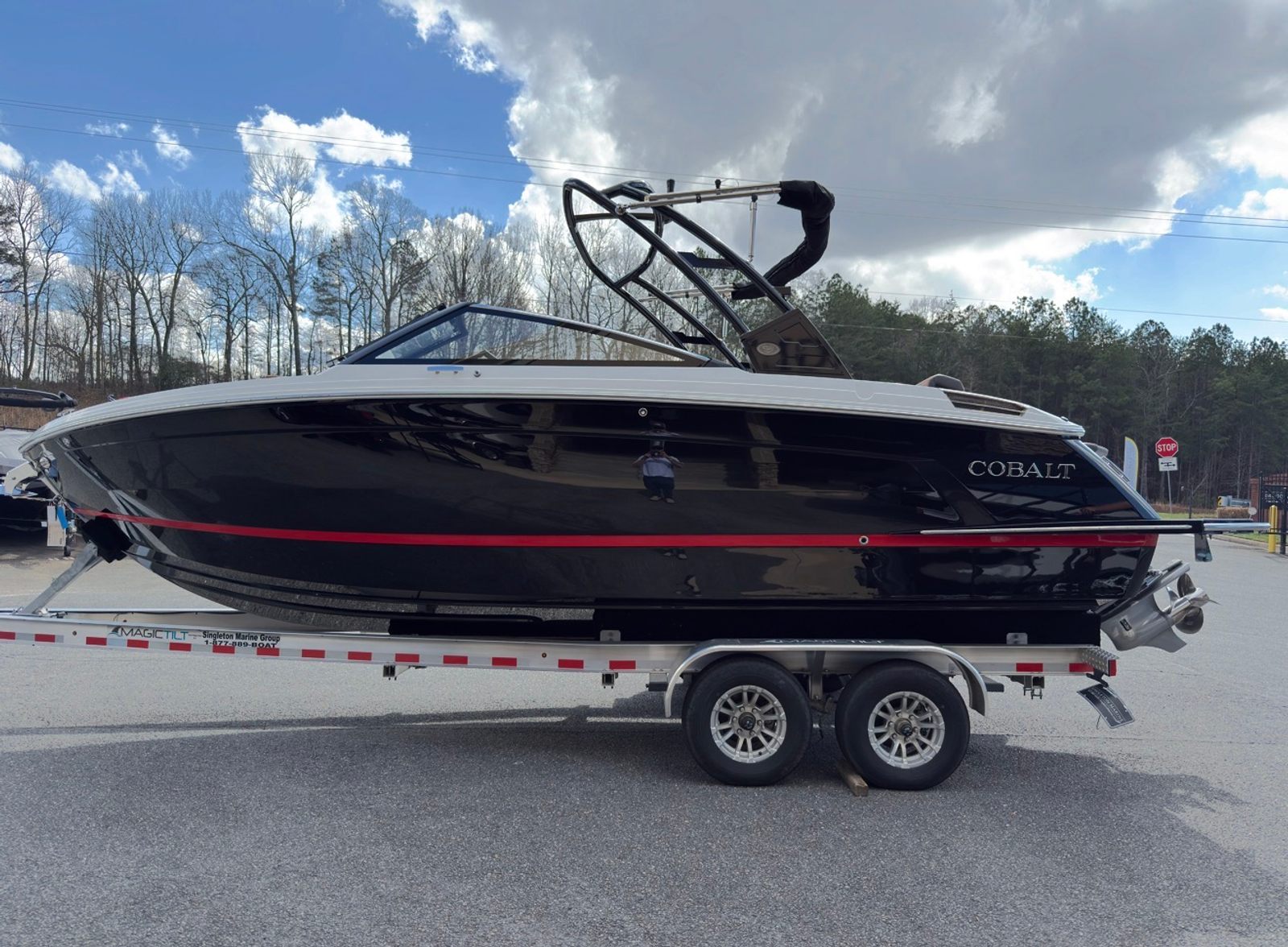 The 2026 Cobalt R6 is a stunning Bowrider that measures an impressive 25.75 feet in length, providing ample space for relaxation and fun. As a new model, the R6 showcases Cobalt’s commitment to quality craftsmanship and attention to detail. The sleek lines, modern profile, and striking Accent Stripe in K.O. Red give this boat a commanding presence on the water. Whether you are docked at the marina or cruising across the lake, the Cobalt R6 is sure to turn heads and spark conversations.