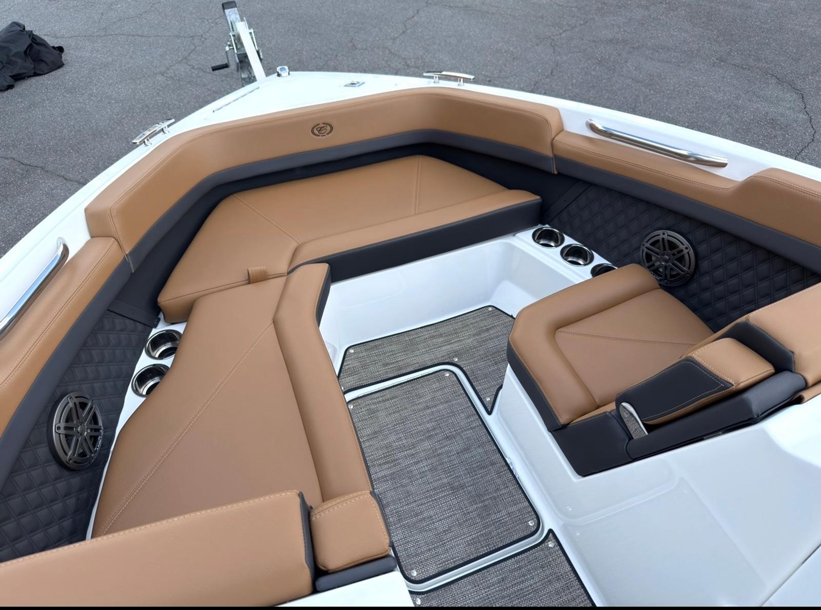 Beyond its luxurious features, the Cobalt R6 Bowrider is engineered for practical enjoyment. The folding arch makes storage and transport more convenient, while the battery maintainer/charger ensures your boat is always ready for spontaneous adventures. The stainless steel docking lights make docking safer and easier, especially in low-light conditions, and the durable Seagrass floor covering is both attractive and easy to maintain.The advanced glass cockpit with dual Garmin 8610 displays simplifies navigation and monitoring, giving you peace of mind as you explore new waters. The spacious cockpit and thoughtful layout provide plenty of room for gear, snacks, and personal items, making day trips and longer excursions equally enjoyable.
