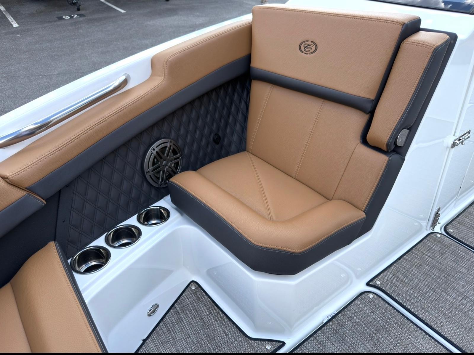 The 2026 Cobalt R6 is loaded with premium features that enhance both comfort and convenience. The Arch, E2 - Black (Folding) with Ebony Bimini provides stylish shade and protection from the sun, while the interior in Caramel and Carbon exudes sophistication and warmth. The solid teak dinette table with cockpit recept is perfect for onboard dining and socializing, adding a touch of elegance to your gatherings.For those who appreciate advanced technology, the glass cockpit with dual Garmin 8610 displays offers intuitive navigation and control, ensuring you stay informed and in command at all times. The stainless steel docking lights not only enhance visibility during evening returns but also add a polished look to the boat’s exterior. The battery maintainer/charger (110V) keeps your systems powered and ready, while the floor covering in Seagrass, Raw Umber provides a comfortable and stylish surface underfoot.Additional features such as the flagpole with flag add a classic nautical touch, making the Cobalt R6 as visually appealing as it is functional.