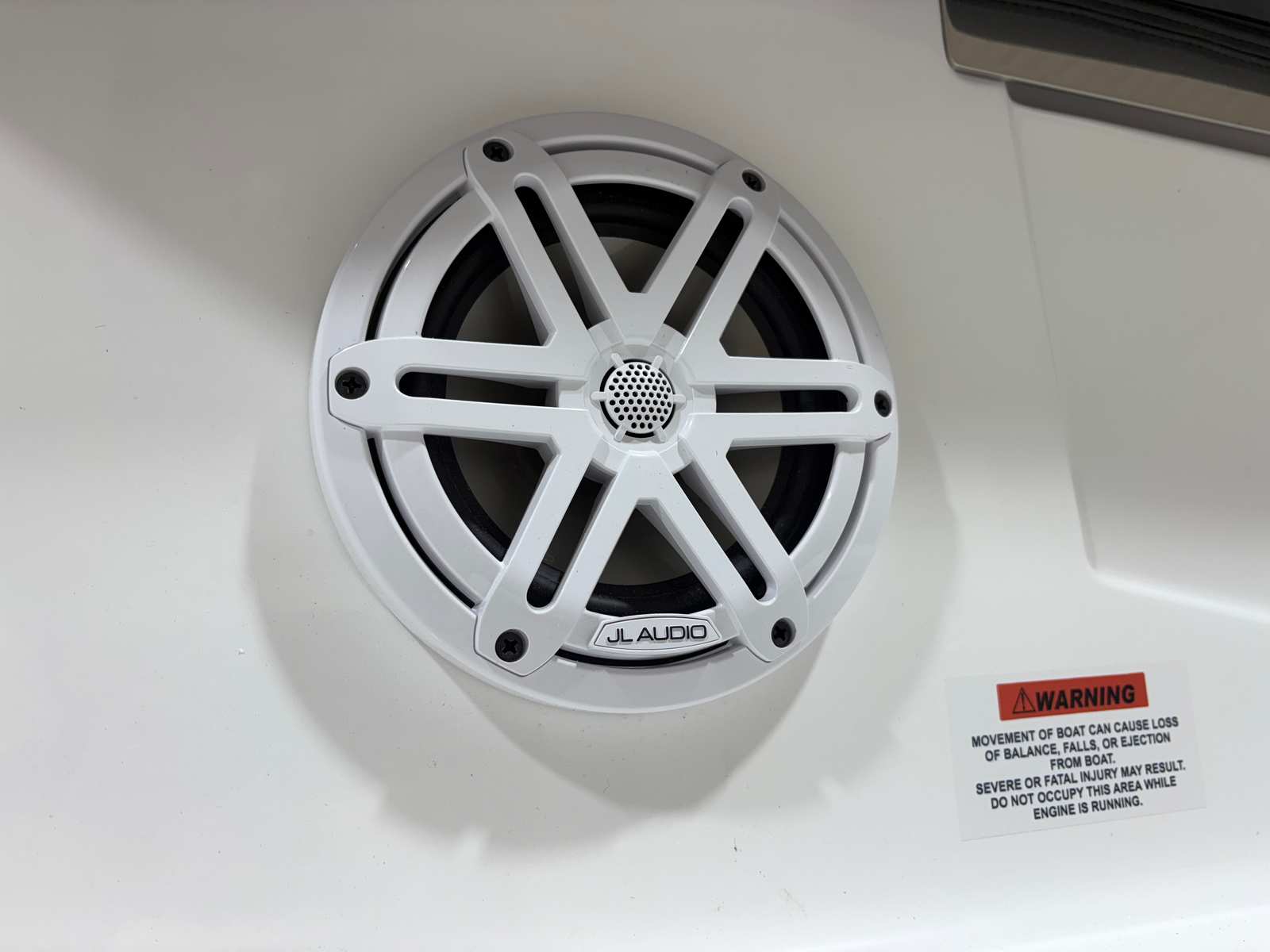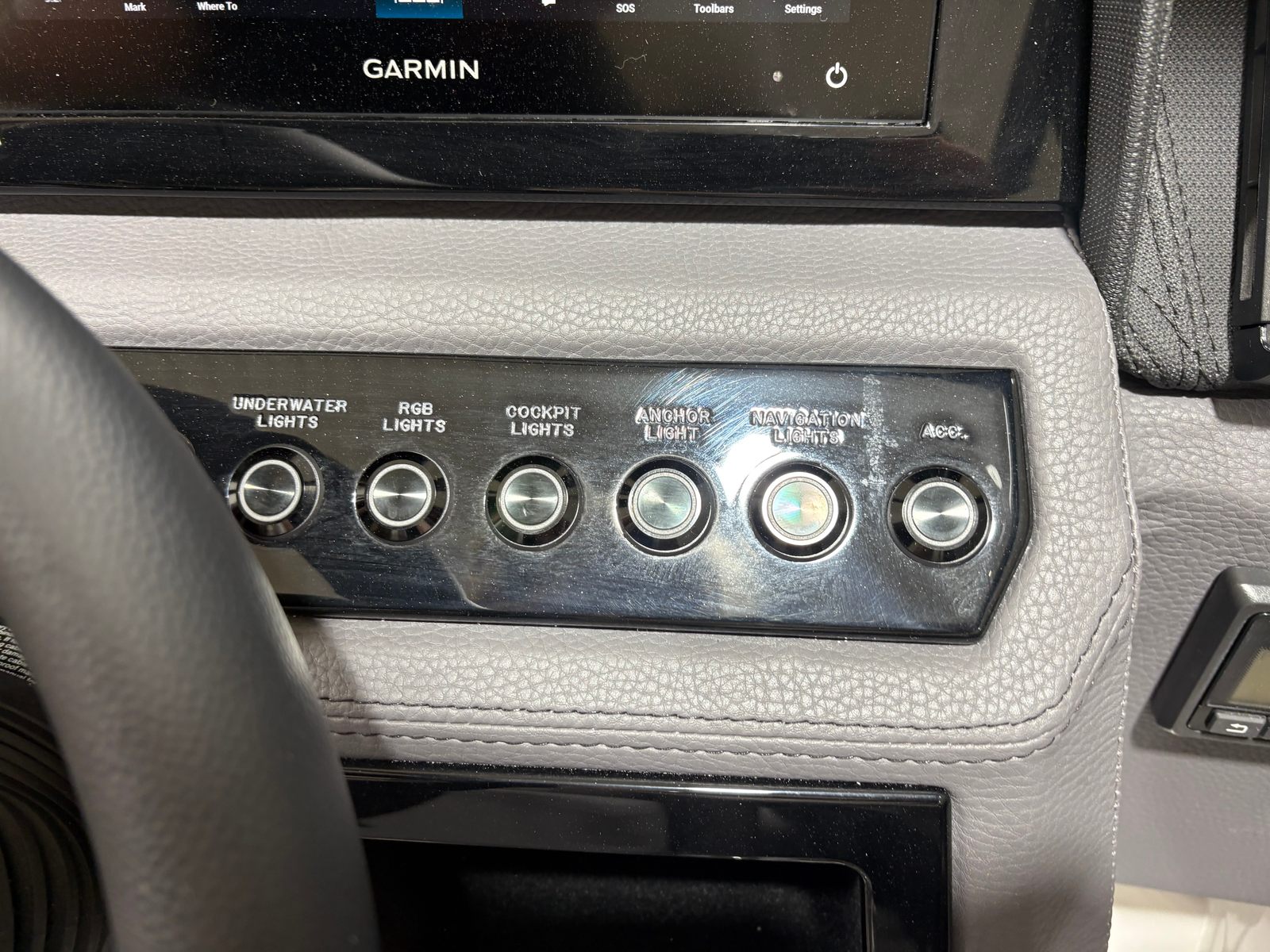 The 2026 Cobalt R6 is packed with special features that enhance both functionality and enjoyment. The White (Folding) Arch, E2 with Capt/Navy Bimini, offers shade and style, while the stainless steel docking lights provide both safety and a touch of sophistication during evening outings. The floor covering in Seagrass, Silver Ash, is not only visually appealing but also comfortable underfoot and easy to maintain. The Frost/Slate interior is designed for both durability and luxury, ensuring every passenger rides in comfort.The glass cockpit, featuring dual Garmin 8610 displays, puts advanced navigation and control at your fingertips, making every journey intuitive and enjoyable. LED interior accent lighting with customizable R/G/B colors sets the perfect mood for any occasion, from lively gatherings to peaceful sunset cruises. The included mooring cover helps protect your investment, while the folding arch adds versatility for storage and transport.