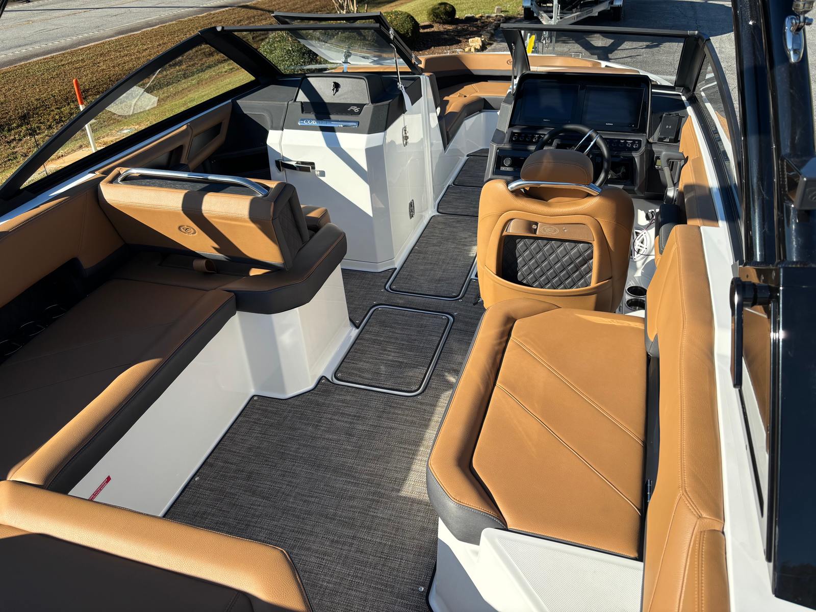 The 2026 Cobalt R6 is loaded with features that enhance both its functionality and comfort. The hull side in Graphite Gray and the hull bottom in white create a striking visual contrast, while the full colored deck in white adds a touch of sophistication. The floor is covered in Seagrass, providing a soft, non-slip surface that is both stylish and practical. The Raw Umber accents throughout the interior add warmth and depth to the overall design.For added convenience and protection, the R6 comes equipped with a mooring cover, ensuring your investment stays safe from the elements when not in use. The folding arch not only adds to the boat’s sporty appearance but also makes it easier to store and transport. The Obsidian windshield offers excellent visibility and protection from wind and spray, enhancing your comfort during high-speed runs or leisurely cruises.Practical features like the white rubrail and four fender clips with lines make docking and securing the boat a breeze, giving you peace of mind when arriving at your favorite marina or waterfront restaurant. The California Requirements (Req Cat Engine) and EPA fuel tank ensure that your boat meets all necessary regulations, allowing you to enjoy worry-free boating wherever your adventures take you.
