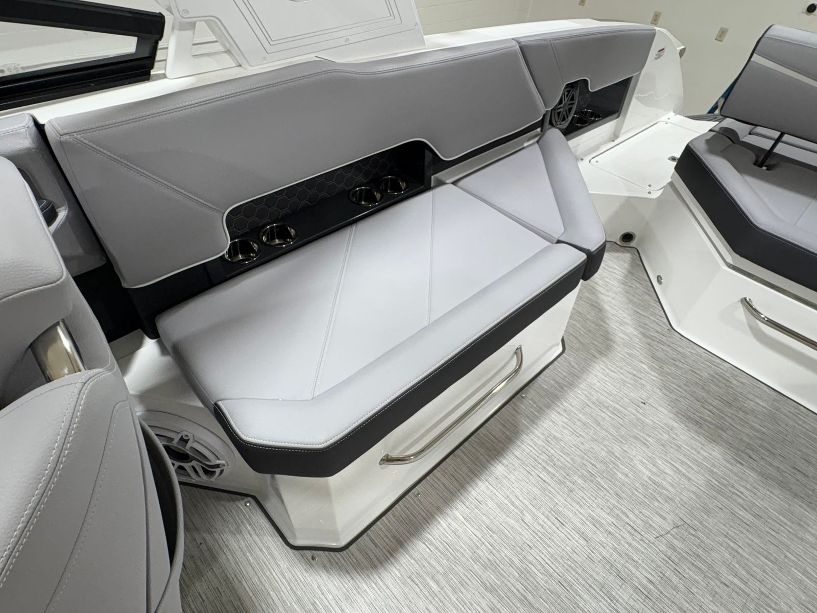 The 2026 Cobalt R8 Surf is a brand-new, meticulously crafted bowrider that measures just over 27 feet in length, offering ample space for entertaining and enjoying the water. With its sleek lines, bold Bayside Blue hull bottom, and contemporary styling, this Cobalt boat for sale is as visually striking as it is functional. The R8 Surf’s spacious layout is designed to maximize comfort and usability, making it ideal for a wide range of on-water activities. Whether you are planning a day of watersports, a leisurely cruise, or a sunset gathering, this bowrider provides the perfect platform for making memories.