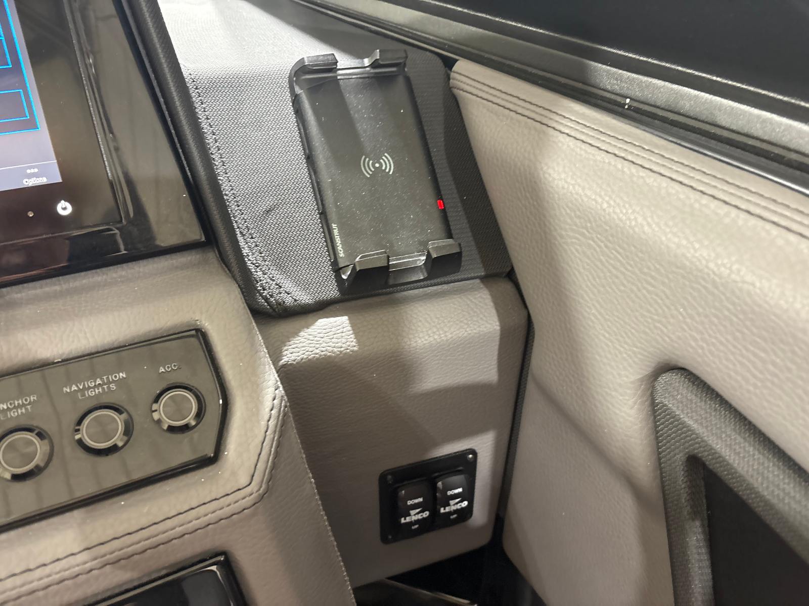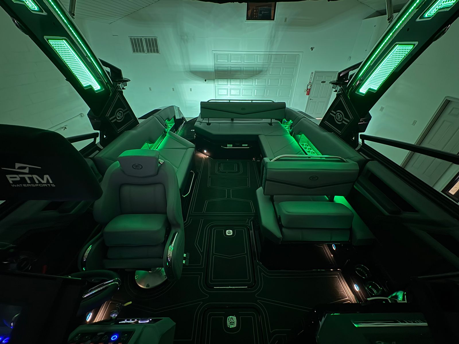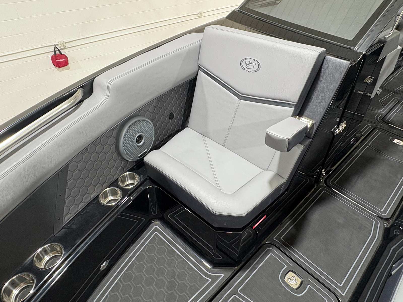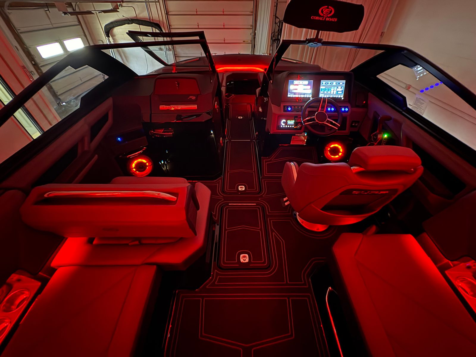 The Cobalt R8 Surf is designed with practicality in mind, making ownership a breeze. The Gunwale Step simplifies boarding, especially when carrying gear or assisting children and guests. The four Fender Clips with Line make docking quick and hassle-free, reducing stress and protecting your investment.The SP BLK Alum Windshield with Model DES offers excellent visibility and protection, ensuring a comfortable ride in varying weather conditions. The Reaview Mirror, PTM with Custom Cover, enhances safety during water sports, allowing the captain to keep an eye on riders at all times.The wireless phone charger/holder adds a modern touch, keeping your devices charged and within reach. The underwater lighting not only enhances the boat’s aesthetic appeal but also improves visibility during nighttime outings, making evening cruises safer and more enjoyable.