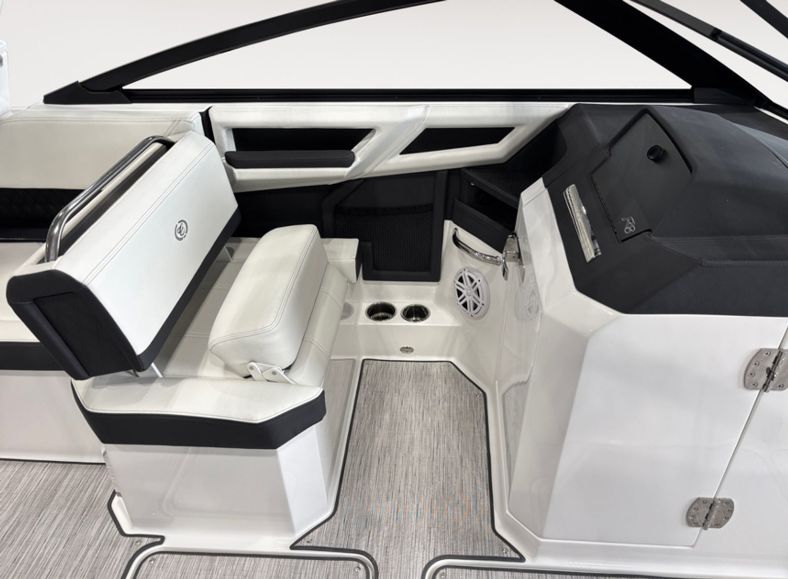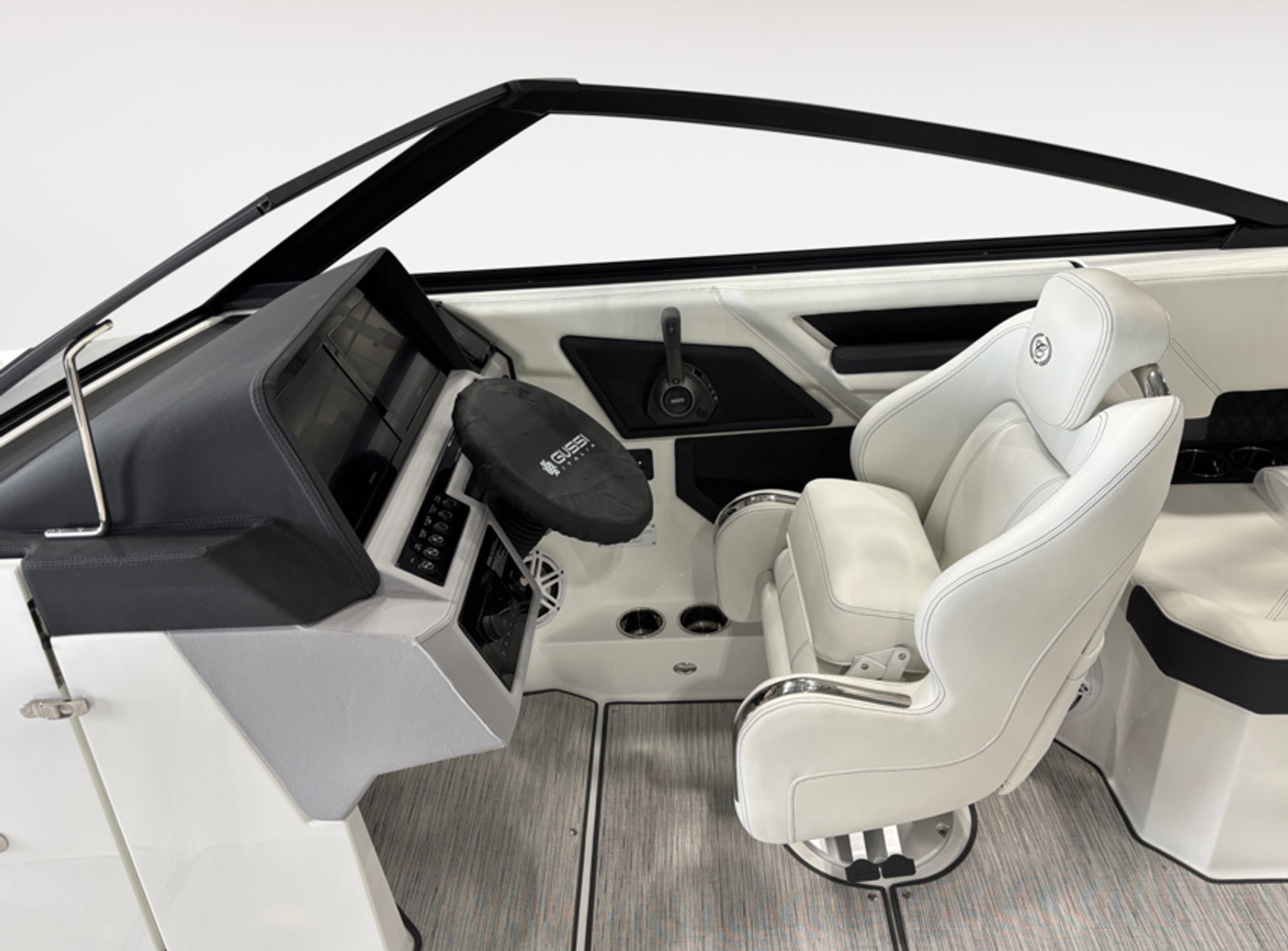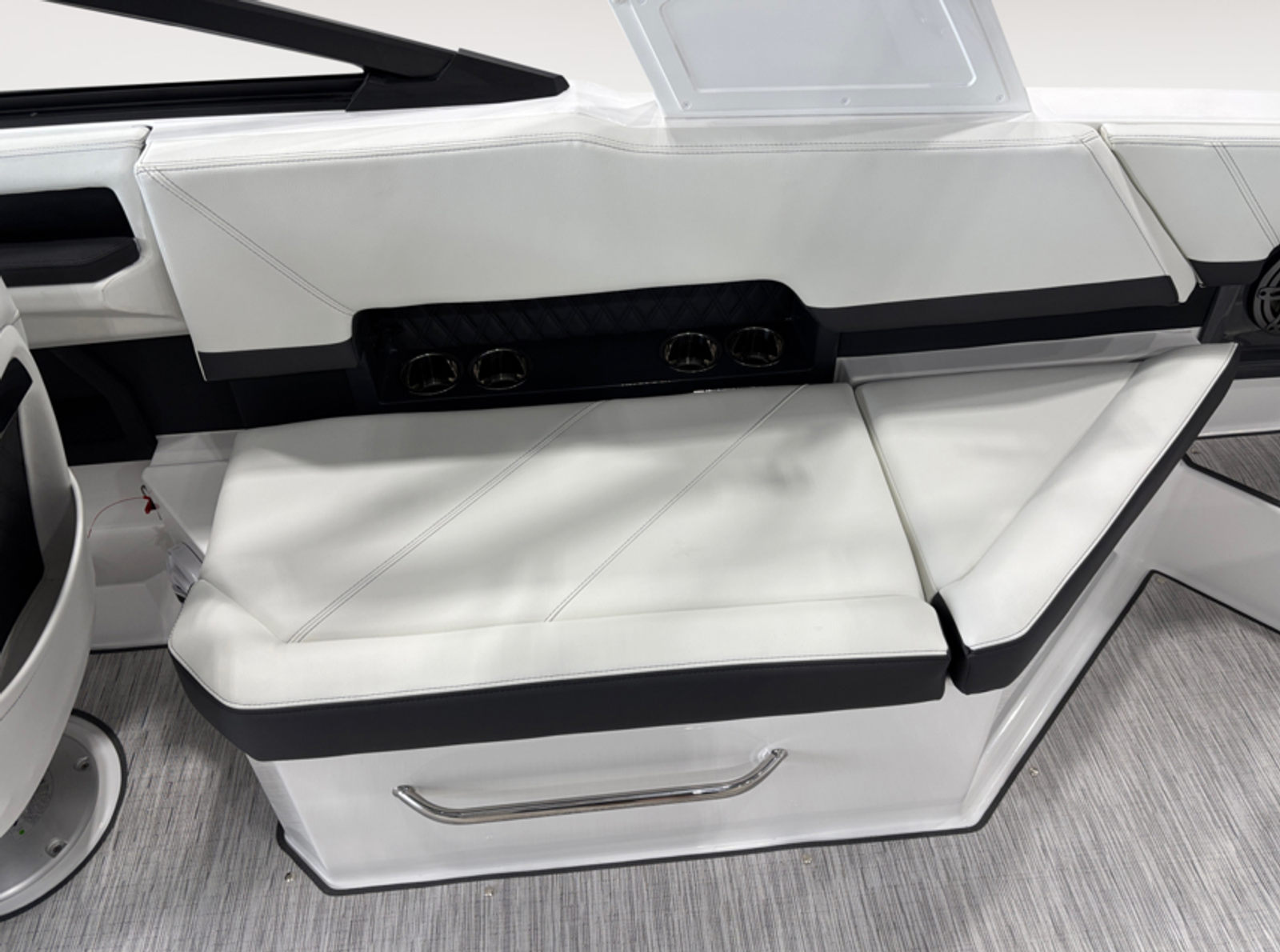 The 2026 Cobalt R8 is a brand-new bowrider that stretches an impressive 27.83 feet in length, making it an ideal choice for boaters who appreciate spaciousness without sacrificing agility. The R8’s sleek lines and modern profile are accentuated by the eye-catching Accent Stripe in K.O. Red and the elegant Cobalt Letters in White Satin, ensuring you turn heads at every marina and on every cruise. This Cobalt boat for sale is meticulously crafted to offer a premium boating experience, combining advanced engineering with luxurious amenities.