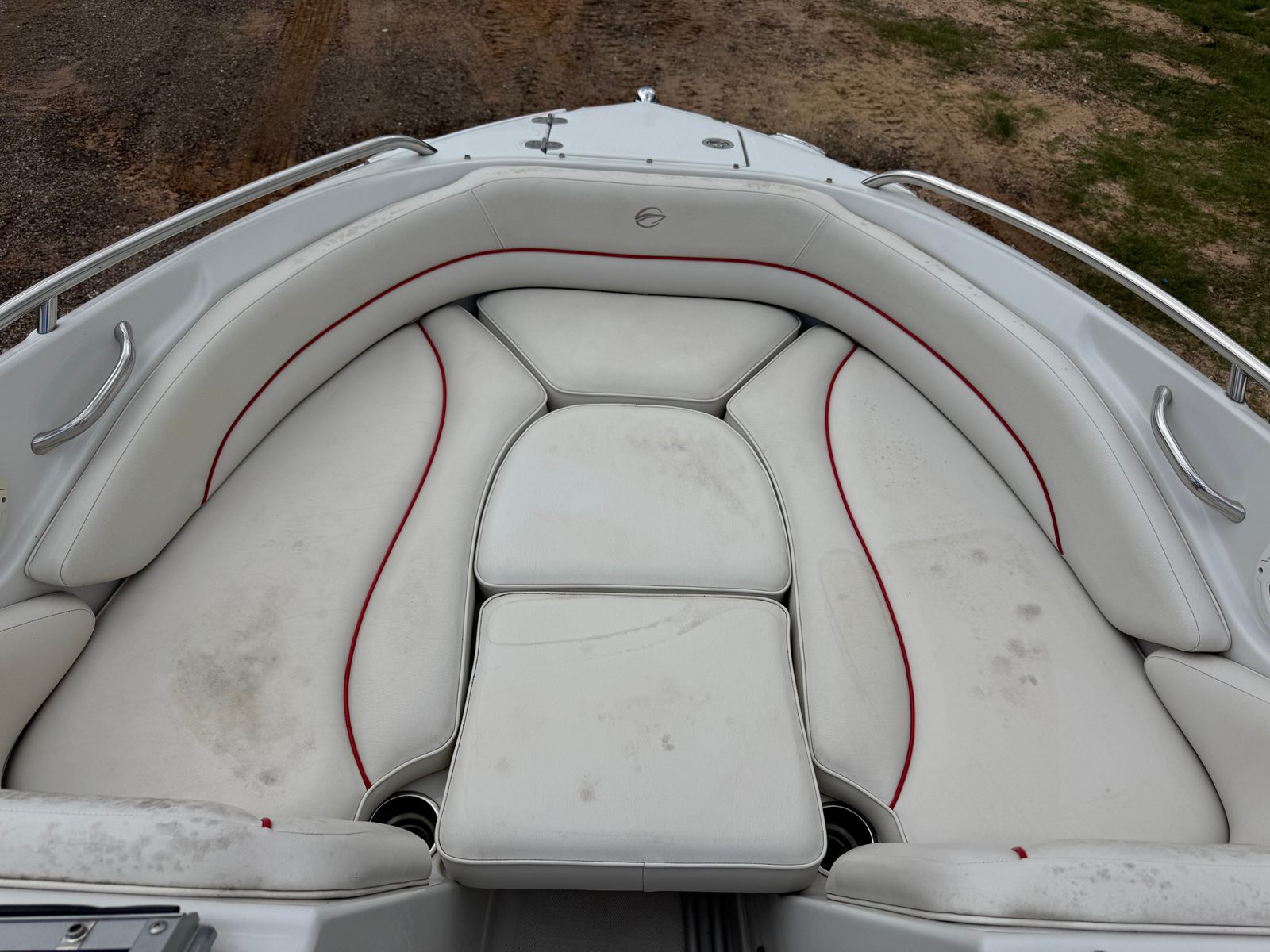 Under the hood, the Crownline 220 LS is powered by a single engine delivering an impressive 260 horsepower. With only 1 engine hour, this used bowrider offers nearly new performance, ensuring reliability and plenty of power for all your aquatic adventures. Whether you are cruising across the lake, towing water skiers, or simply enjoying a leisurely ride, the 260 HP engine provides smooth acceleration and responsive handling. The efficient powertrain makes this Crownline boat for sale a joy to operate, delivering both speed and stability for a wide range of activities.