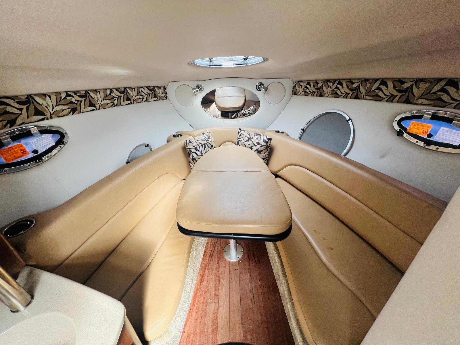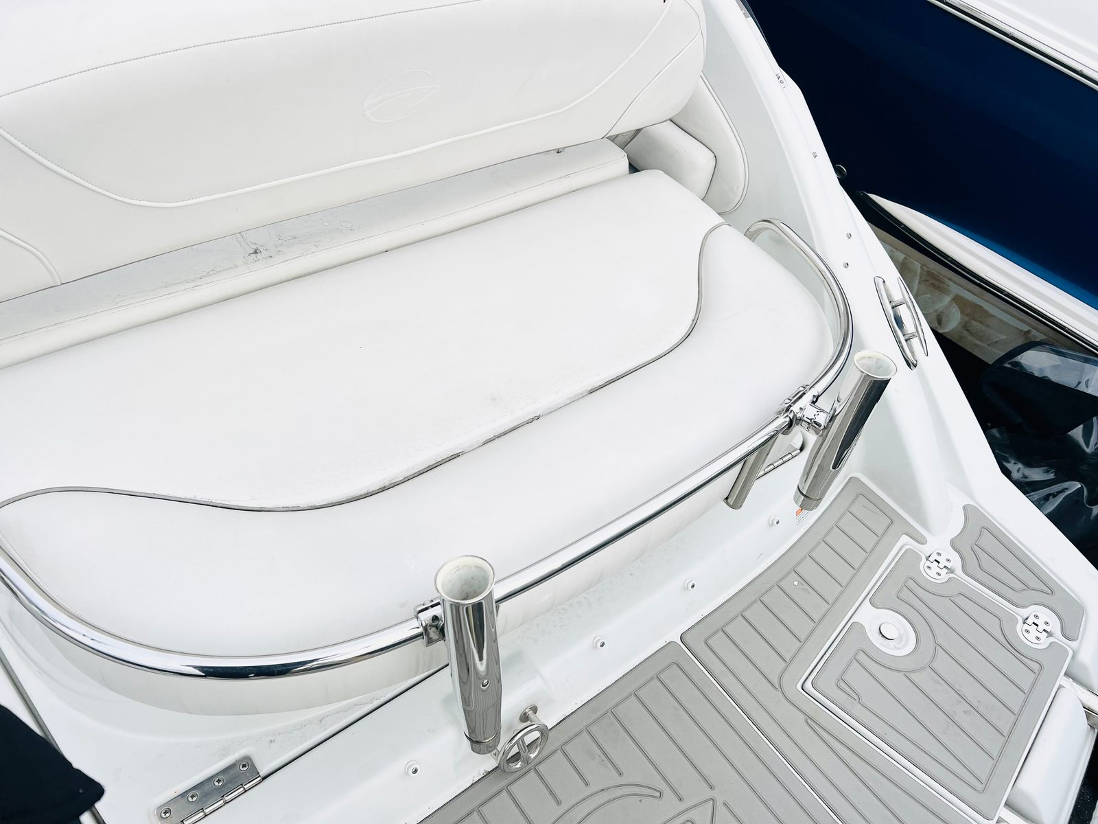 This Crownline boat for sale is packed with features that elevate your time on the water. The 26-foot length provides a spacious deck and cabin, perfect for hosting friends and family or enjoying a quiet retreat. The ergonomic helm station offers intuitive controls and excellent visibility, ensuring a safe and enjoyable journey. The cabin is designed for comfort, with plush seating and thoughtful storage solutions that maximize space and convenience. The boat’s layout is ideal for both daytime cruising and overnight stays, making it a versatile choice for a wide range of activities.