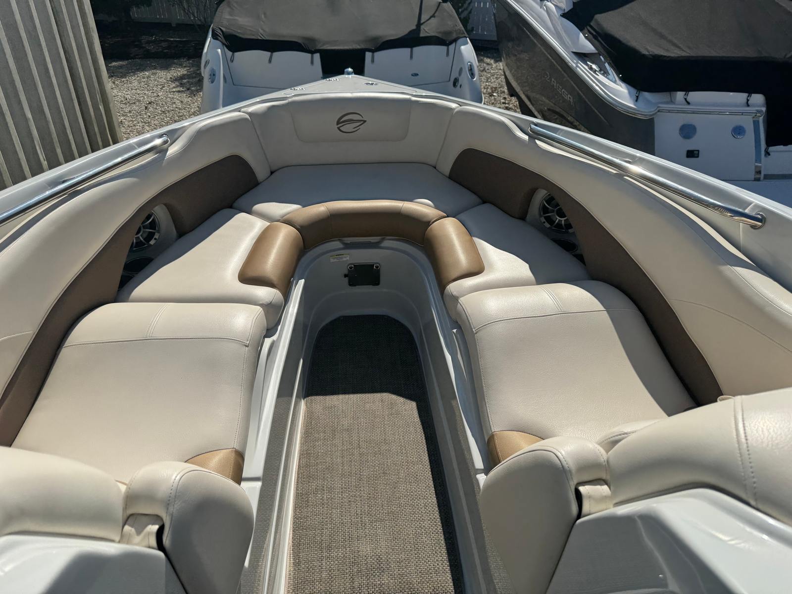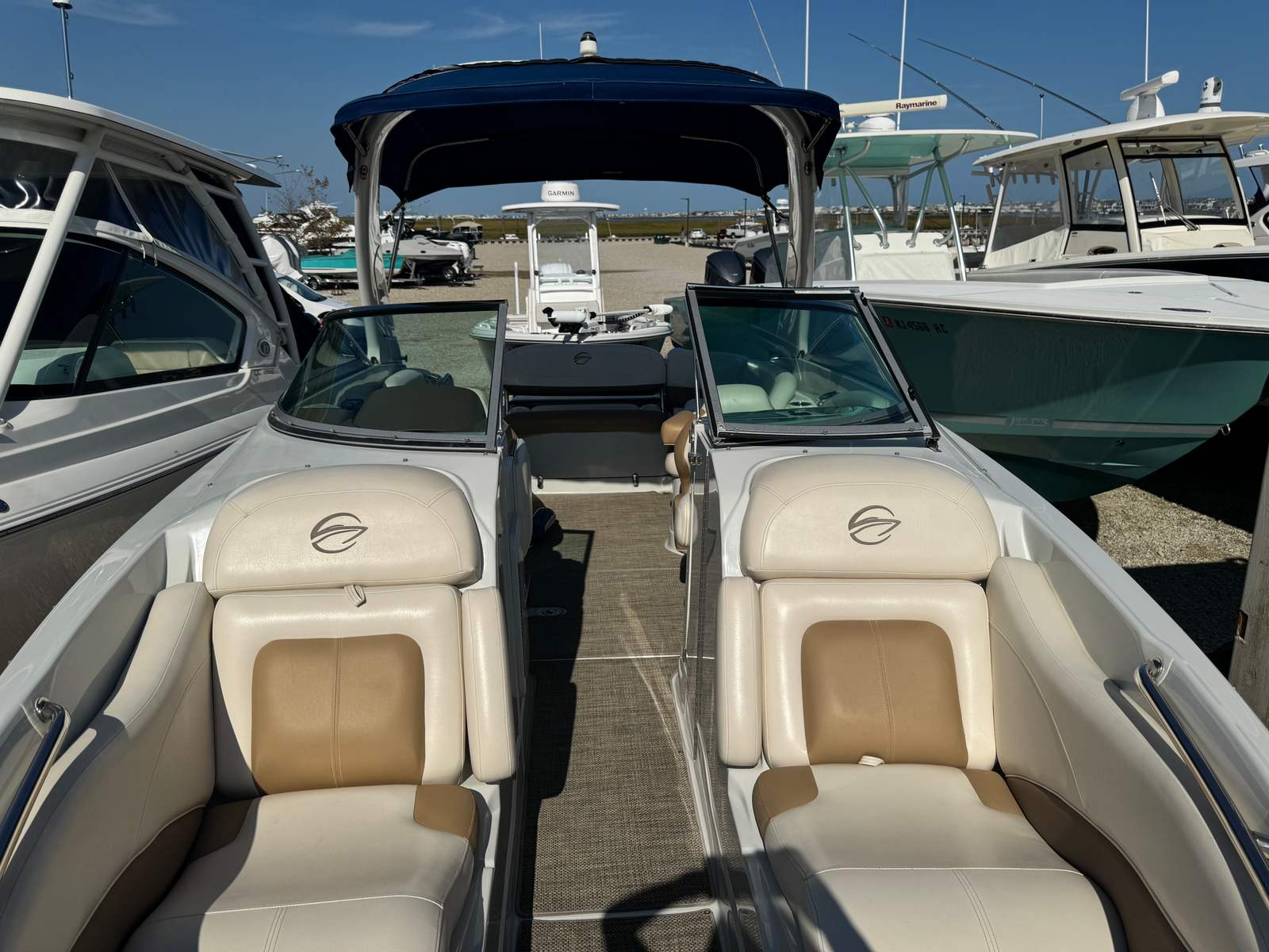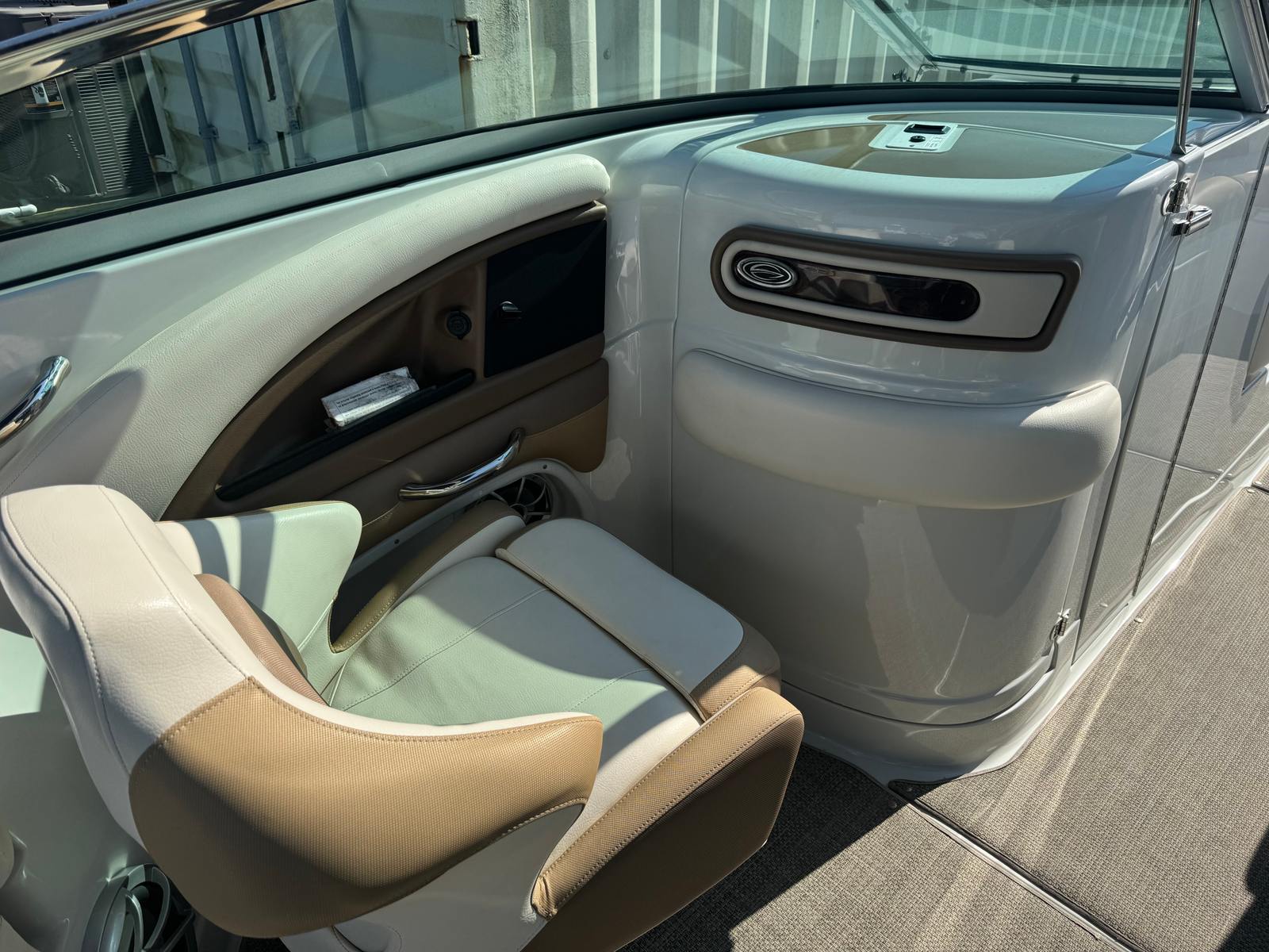 The Crownline 285 SS is thoughtfully designed to maximize comfort, convenience, and enjoyment for everyone on board. Its spacious bowrider layout offers generous seating in both the bow and cockpit areas, allowing guests to relax, socialize, or soak up the sun. The ergonomically designed helm ensures that the captain has easy access to all controls, providing a confident and enjoyable driving experience.This model’s 28.5-foot length translates into ample deck space, making it easy to move around and find your perfect spot to unwind. The high-quality upholstery, stylish accents, and attention to detail throughout the boat create an inviting atmosphere that’s perfect for entertaining. With plenty of storage compartments cleverly integrated into the design, you can keep your gear organized and out of the way, ensuring a clutter-free environment for all your adventures.