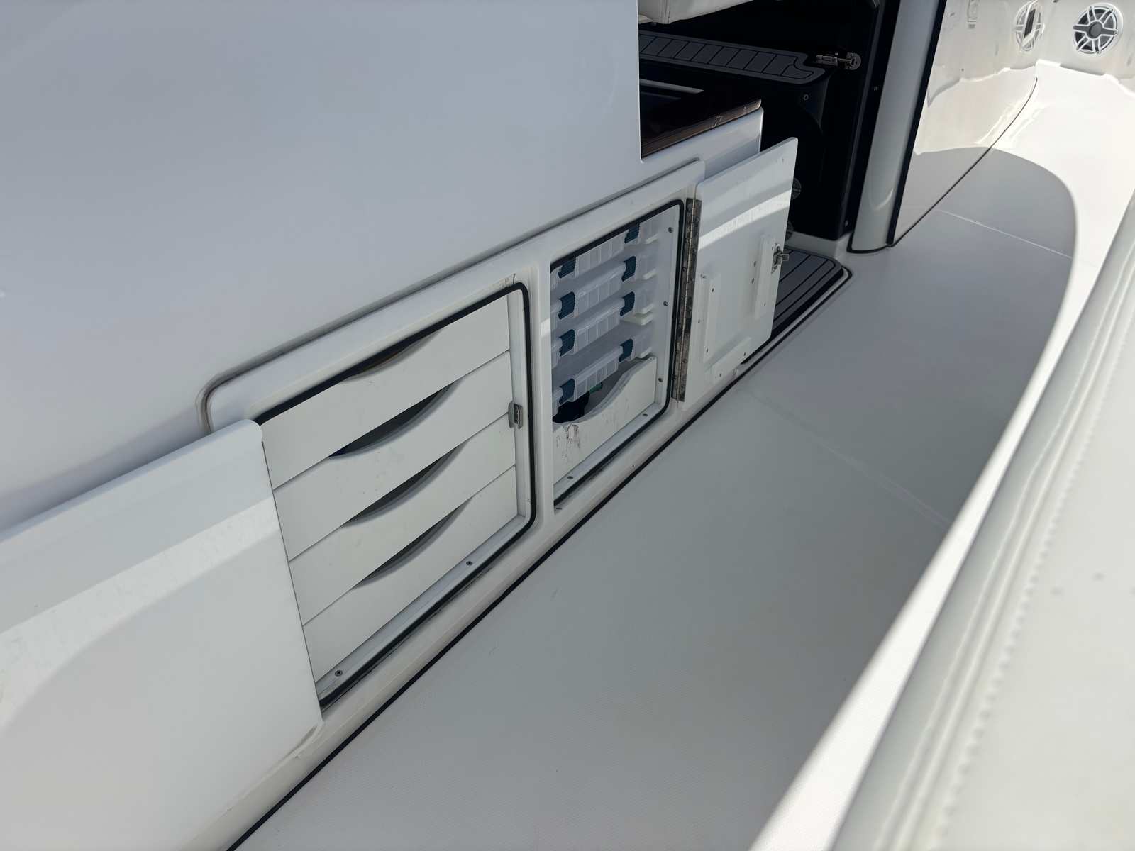 Powering the Everglades 395 CC are three high-performance engines, delivering a combined 1,275 horsepower. With only 265 engine hours, these engines offer plenty of life and reliability for years to come. The triple-engine setup ensures rapid acceleration, impressive top speeds, and smooth handling even in challenging conditions. Whether you’re cruising along the coastline, heading offshore for a fishing expedition, or enjoying a day of water sports, the Everglades 395 CC provides the power and agility you need for a thrilling ride. The advanced engineering behind this Center Console boat for sale guarantees optimal fuel efficiency and responsive maneuverability, making every journey enjoyable and stress-free.