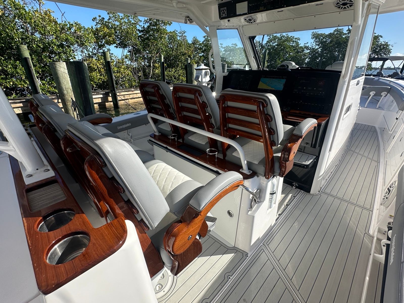 In summary, the 2021 Everglades 435 CC is a remarkable center console boat for sale that offers unparalleled performance, versatility, and luxury. With its impressive 45-foot length, quad engines delivering 1,700 horsepower, and a host of premium features, this used Everglades boat for sale is an exceptional opportunity for discerning buyers. Whether you are seeking adventure, relaxation, or the ultimate fishing experience, the 435 CC is ready to deliver. Don’t miss your chance to own one of the finest center console boats on the market—contact the dealer today to learn more and schedule your personal viewing.