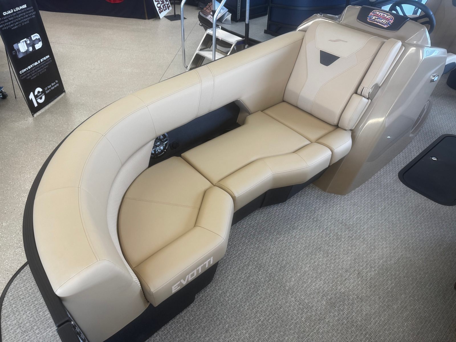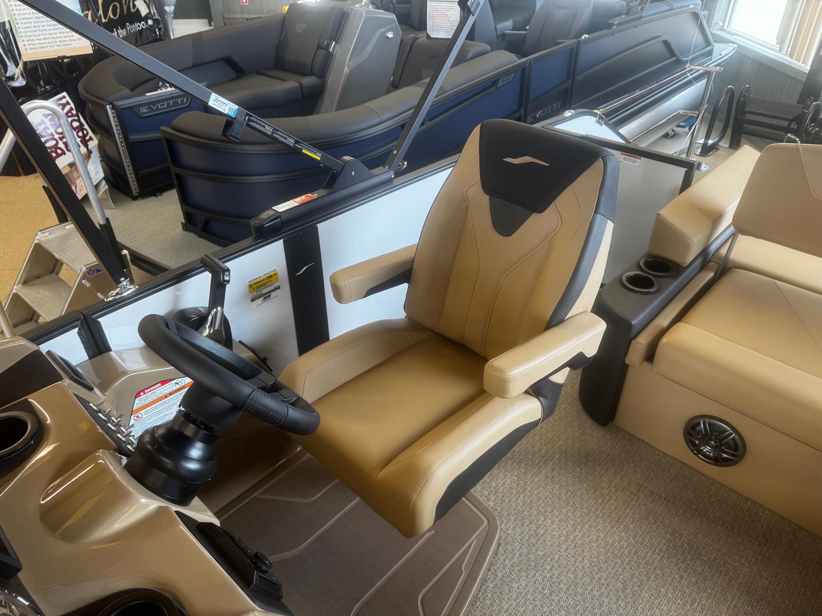 Powering the Evotti 521 CS is a robust 150-horsepower engine, ensuring smooth and reliable performance for all your aquatic adventures. The new engine offers impressive acceleration and responsive handling, making it easy to navigate lakes, rivers, and coastal waters. Whether you’re cruising at a leisurely pace or picking up speed for some excitement, this pontoon boat provides the perfect balance of power and efficiency. The advanced engine technology also contributes to a quieter ride, allowing you to enjoy conversations and the sounds of nature without unnecessary noise.