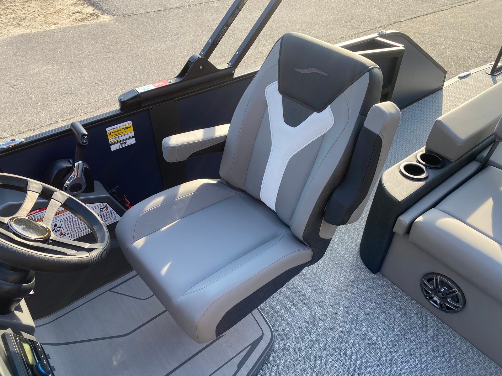 Step aboard the Evotti 521 CS and discover a host of special features designed to enhance your boating experience. The Panel Platinum Blue Satin and Panel Accent Pearl White Gloss create a striking visual appeal, while the Canvas Black provides stylish protection from the elements. Inside, the Base Vinyl Steel Gray upholstery offers both comfort and durability, complemented by the Steel Gray Evolution Flooring for a modern, easy-to-clean surface.A single battery powers the boat’s electrical systems, ensuring reliable operation throughout your adventures. The Garmin 943 with 5" gauges delivers advanced navigation and monitoring capabilities, keeping you informed and in control at all times. With the Yamaha F200XD2 Mechanical White engine and Prerig Yamaha Mechanical - 500 Series, you can expect seamless performance and straightforward maintenance. Single Engine Rigging & Prop further simplifies operation, making this pontoon boat accessible to both seasoned boaters and newcomers alike.