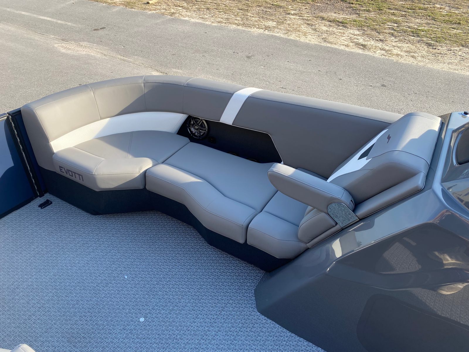 The Evotti 521 CS Pontoon boat for sale is a standout option for those who value style, performance, and versatility. With its new 2026 build, 23.5-foot length, powerful Yamaha F200XD2 engine, and a suite of special features including Panel Platinum Blue Satin, Panel Accent Pearl White Gloss, Canvas Black, Base Vinyl Steel Gray, Steel Gray Evolution Flooring, single battery, Garmin 943 with 5" gauges, and efficient rigging, this boat is ready to deliver unforgettable experiences.Don’t miss your chance to own an Evotti boat for sale that combines luxury, practicality, and fun in one exceptional package. Contact your dealer today to learn more about the Evotti 521 CS and start your journey toward endless adventures on the water.