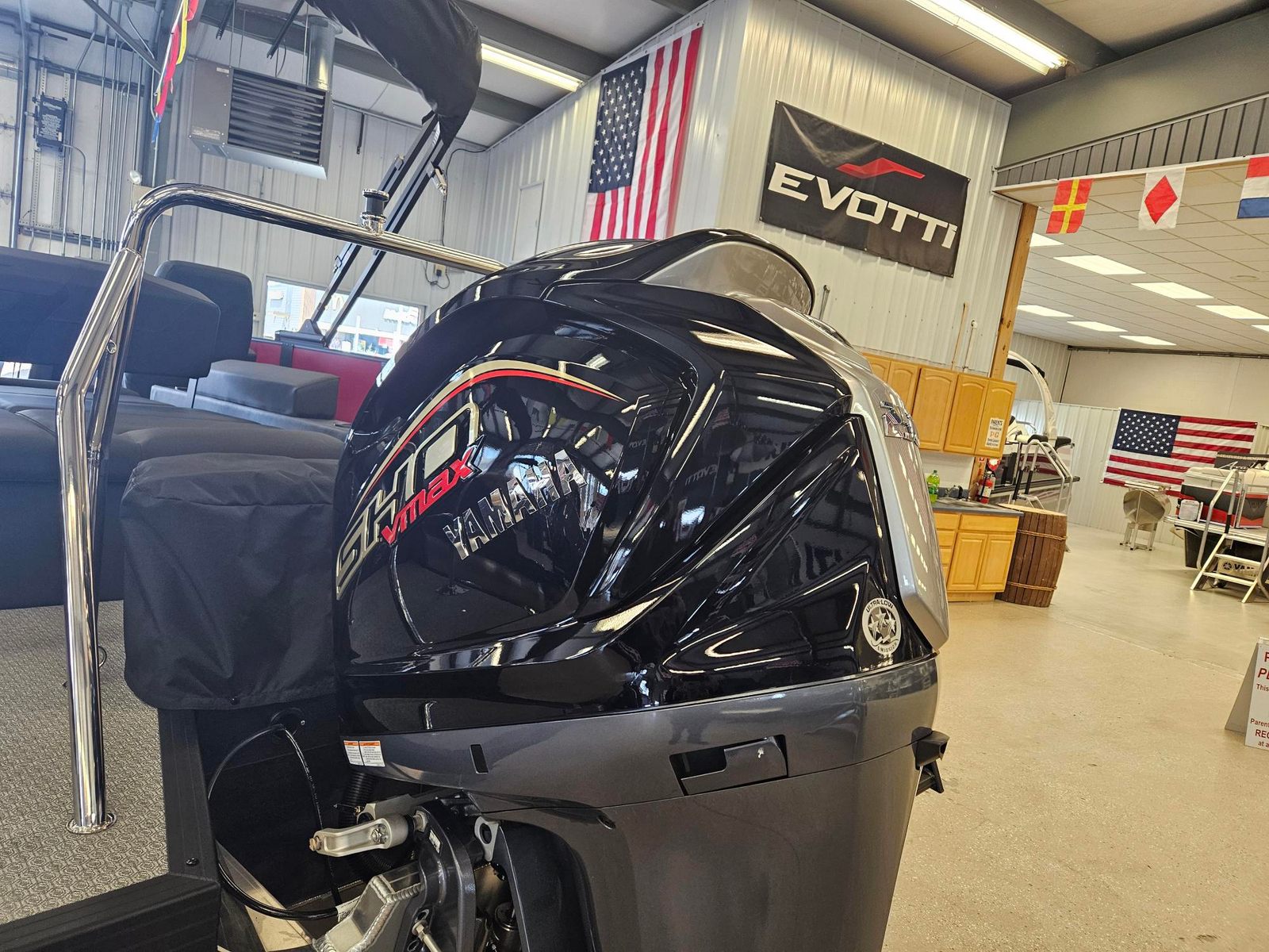 Powering the Evotti 521 CS is a robust single engine with an impressive 250 horsepower, providing the perfect balance of speed, efficiency, and reliability. This pontoon is equipped with Prerig Yamaha Mechanical - 500 Series, ensuring smooth and responsive handling for both leisurely cruises and exhilarating rides. The Single Engine Rigging & Prop system is designed for optimal performance, making every journey on the water enjoyable and worry-free. With power assist steering, maneuvering this pontoon is effortless, allowing you to navigate tight marinas or open waters with confidence and ease.