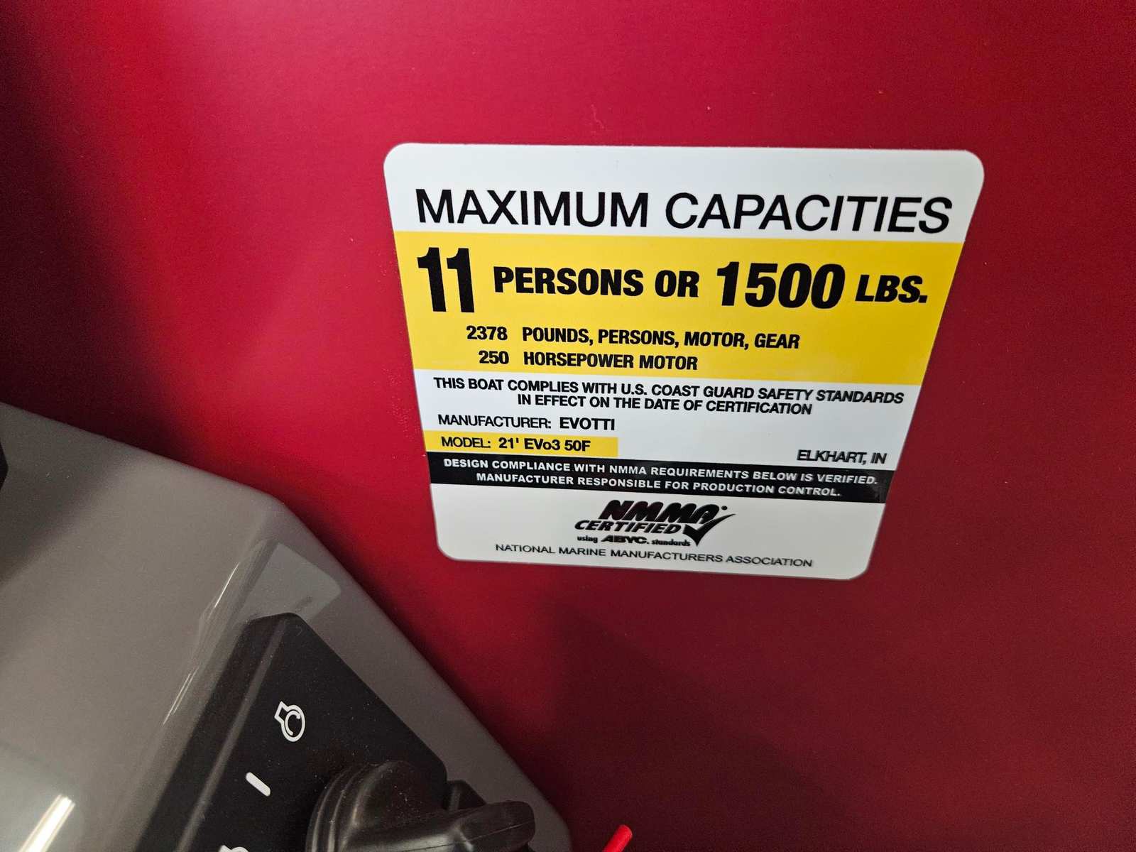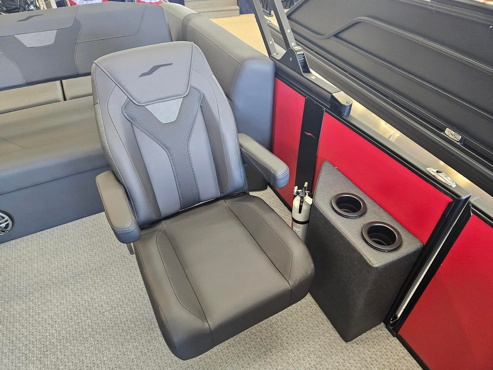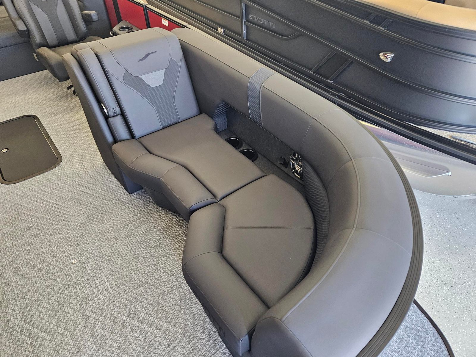 The Evotti 521 CS is packed with premium features that elevate your boating experience. The sleek windscreen offers protection from the elements while enhancing the boat’s modern aesthetic. The Garmin 943 with 5" gauges provides advanced navigation and real-time data, ensuring you stay informed and in control during every trip. The Clarion head unit and speakers deliver high-quality sound, setting the perfect atmosphere for any occasion, from lively parties to peaceful sunset cruises.Aesthetically, the Evotti 521 CS boasts a striking appearance with its Panel Evolution Red and Panel Accent Diamond Black Satin, complemented by Canvas Black and Base Vinyl Spectra Black. These design elements create a bold and sophisticated look that is sure to turn heads at any dock or marina.