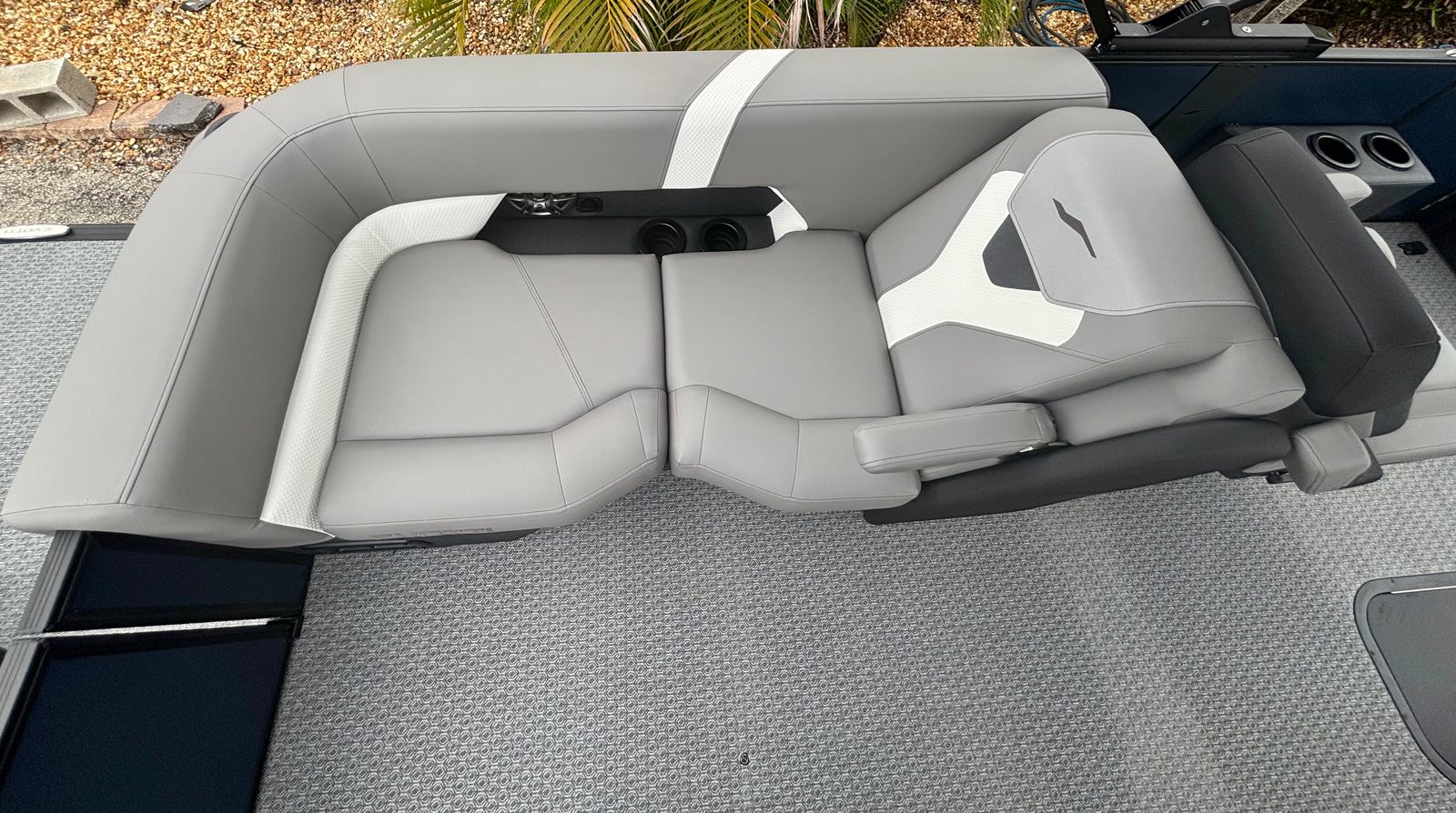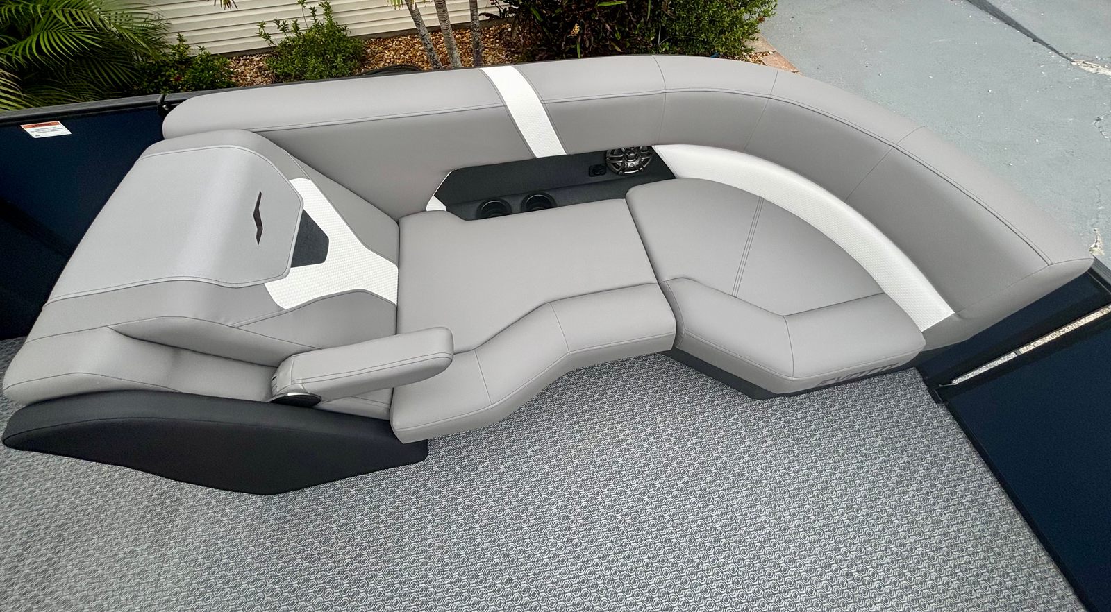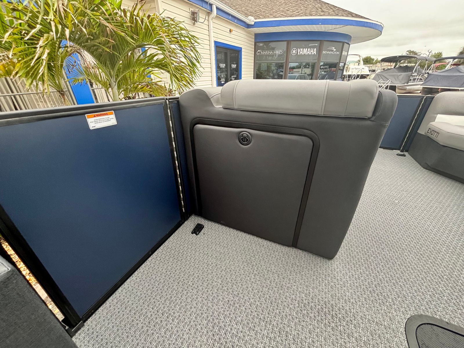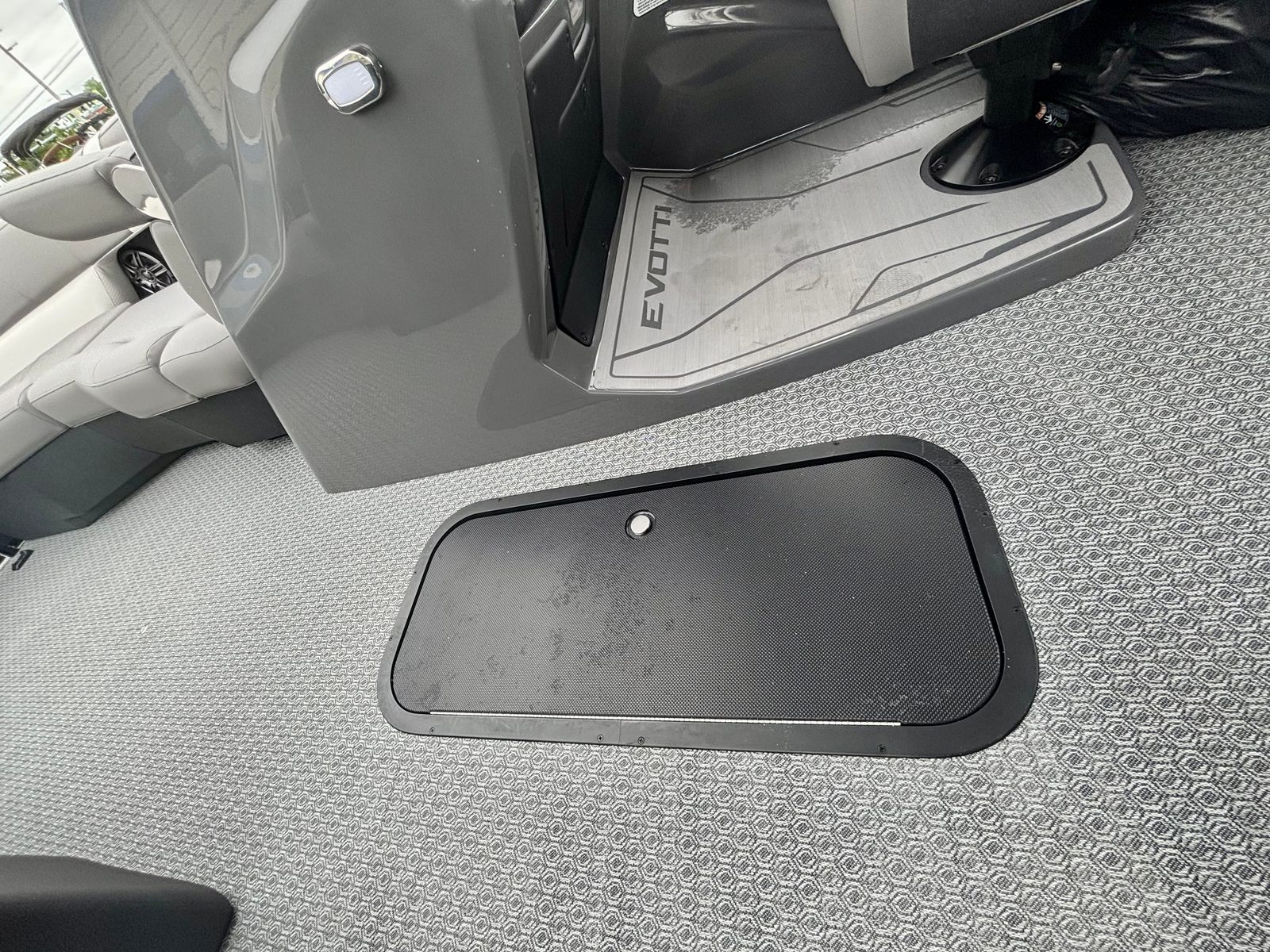 The 2026 Evotti 521 QL pontoon is packed with premium features that enhance both its functionality and visual appeal. The Panel Platinum Blue Satin and Panel Accent Pearl White Gloss create a striking exterior that turns heads at every marina. Step aboard and you are greeted by the luxurious Base Vinyl Steel Gray upholstery, which offers both comfort and durability for all your guests. The Steel Gray Evolution Flooring not only adds a touch of sophistication but also provides a non-slip, easy-to-clean surface that is perfect for active days on the water.For the tech-savvy boater, the Garmin 943 with 5" Gauges delivers advanced navigation and real-time data at your fingertips, ensuring you stay informed and on course. The Clarion Head Unit & Speakers set the mood with high-quality audio, allowing you to enjoy your favorite playlists as you cruise. The thoughtfully designed windscreen offers protection from the elements, enhancing comfort during every journey.