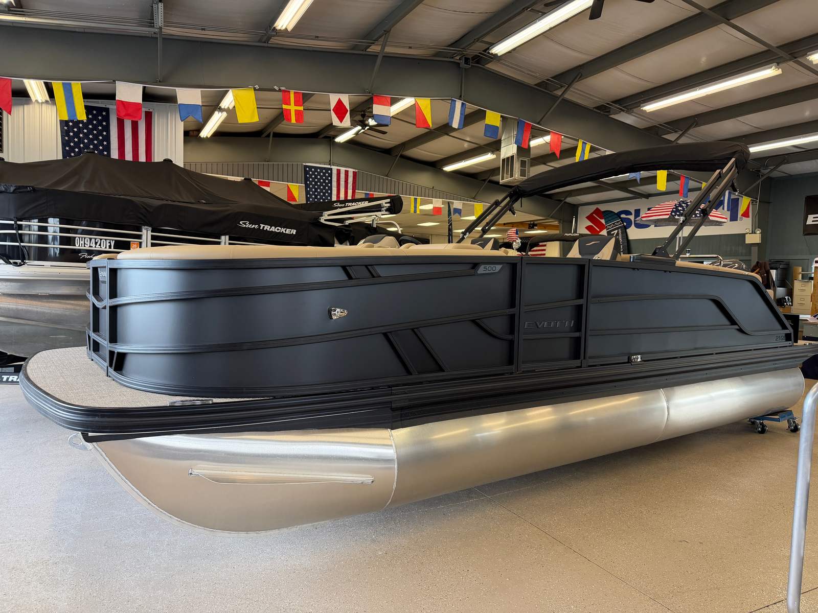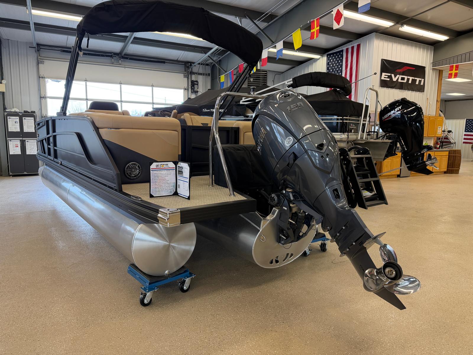 In summary, the 2026 Evotti 521 QL Pontoon is a remarkable blend of style, performance, and functionality. With its striking Panel Diamond Black Satin finish, Roan Bronze Evolution Flooring, powerful Yamaha F150XD engine, and advanced Garmin navigation system, this new pontoon boat for sale is designed to impress. Spacious, comfortable, and easy to operate, it offers everything you need for memorable days on the water. If you are looking for an Evotti boat for sale that combines luxury, reliability, and versatility, the 521 QL is the perfect choice. Do not miss the opportunity to make this exceptional pontoon your own—contact the dealer today to learn more and start your next adventure.