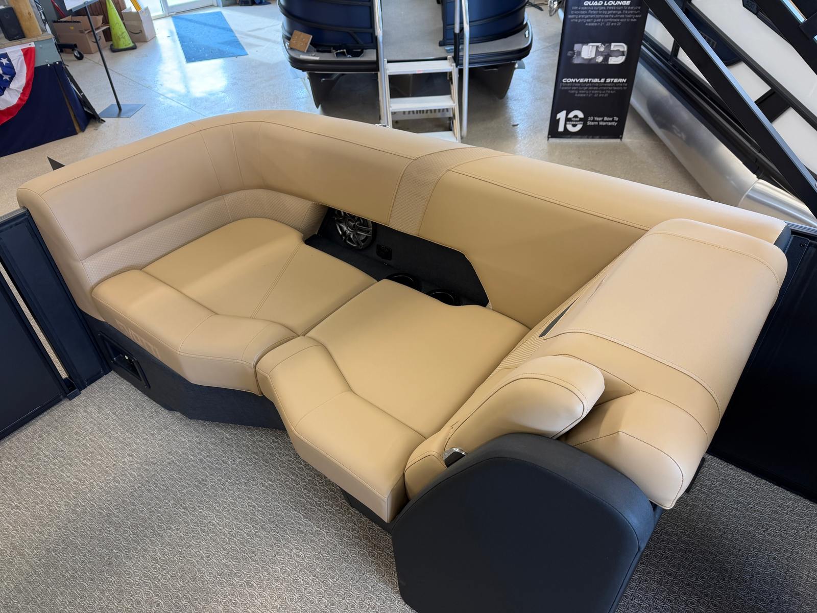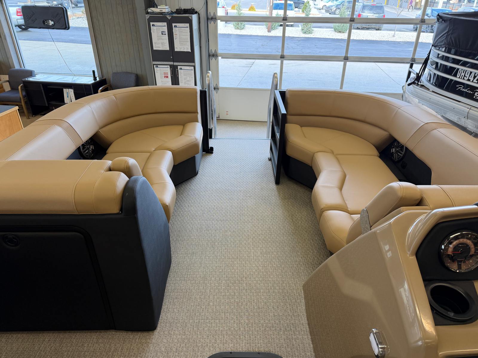 Step aboard the Evotti 521 QL and you will immediately notice the attention to detail and commitment to comfort. The base vinyl in Roan Bronze not only looks sophisticated but also offers durability and easy maintenance, perfect for active days on the water. The Roan Bronze Evolution Flooring adds a touch of luxury underfoot, providing both style and slip-resistant safety. The single battery setup ensures reliable power for all your onboard electronics, while the Garmin 5" Echo Map with 5" gauges keeps navigation and system monitoring at your fingertips. Every feature has been thoughtfully selected to enhance your boating experience, making this pontoon boat for sale a true standout in its class.