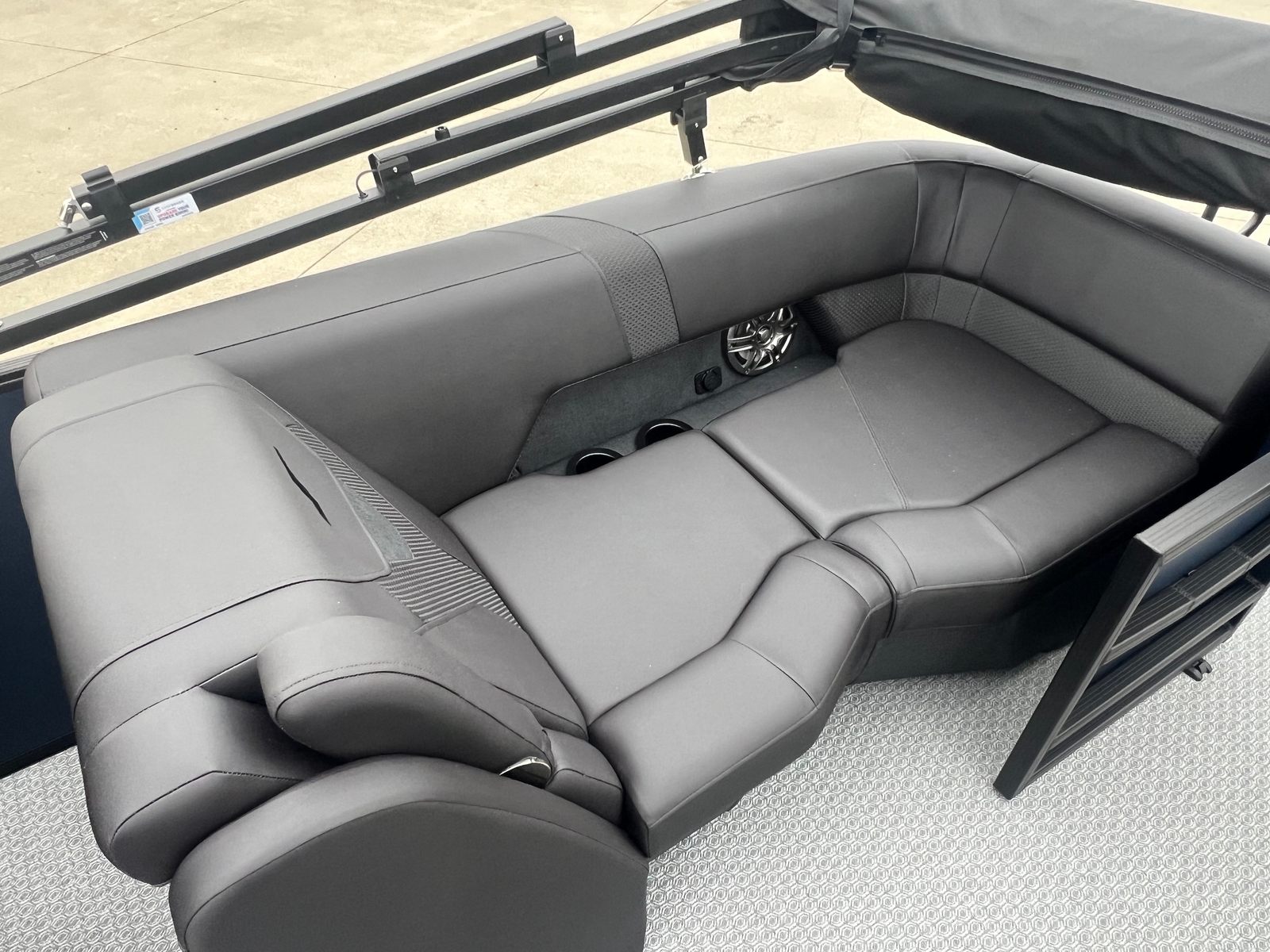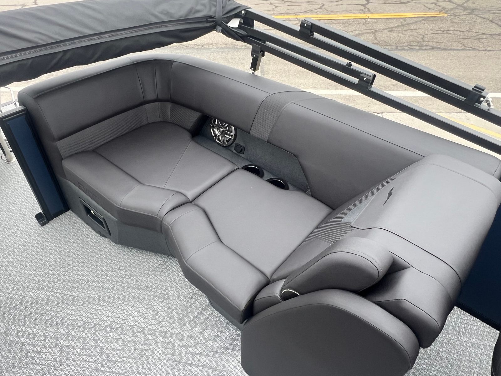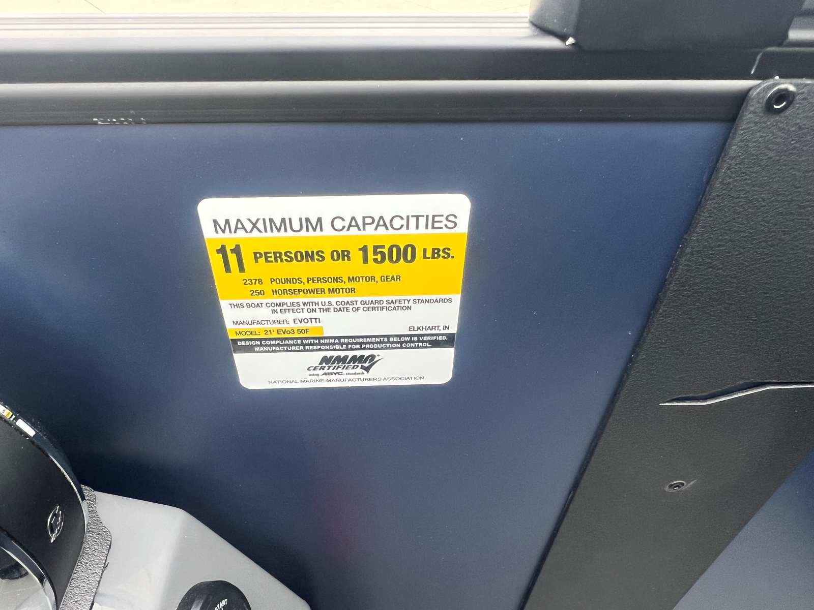 Step aboard the Evotti 521 QL and immerse yourself in a world of luxury and innovation. The Panel Platinum Blue Satin and Panel Accent Diamond Black Satin create a striking visual impression, while the Canvas Black provides both style and protection from the elements. The Base Vinyl Spectra Black upholstery is not only visually appealing but also designed for durability and comfort, ensuring your seating remains pristine season after season.The Steel Gray Evolution Flooring adds a touch of sophistication and is engineered for easy cleaning and long-lasting wear, making it ideal for active families and social gatherings. The dual battery system ensures you have reliable power for all your onboard electronics and accessories, while the Garmin 5" Echo Map with 5" gauges offers advanced navigation and real-time data at your fingertips. Every detail of the Evotti 521 QL is crafted to enhance your boating experience, from the premium finishes to the state-of-the-art technology.