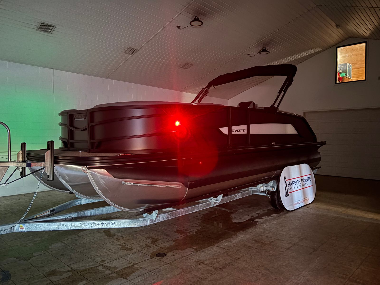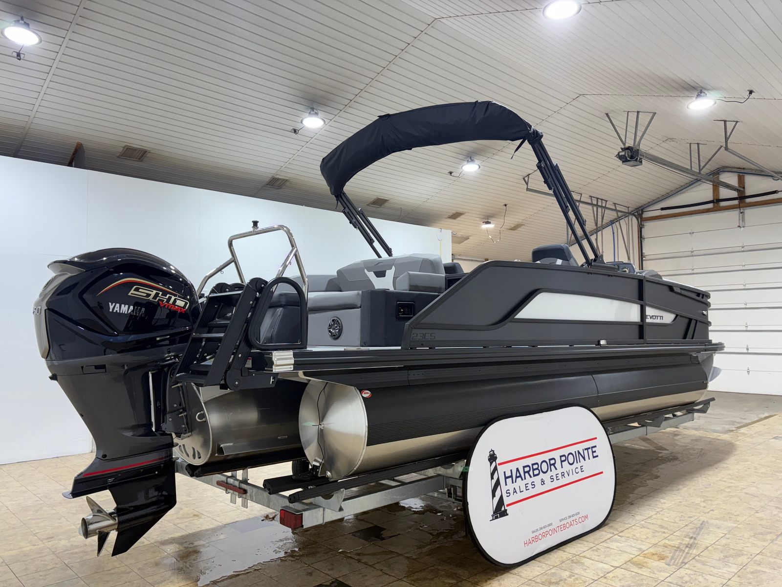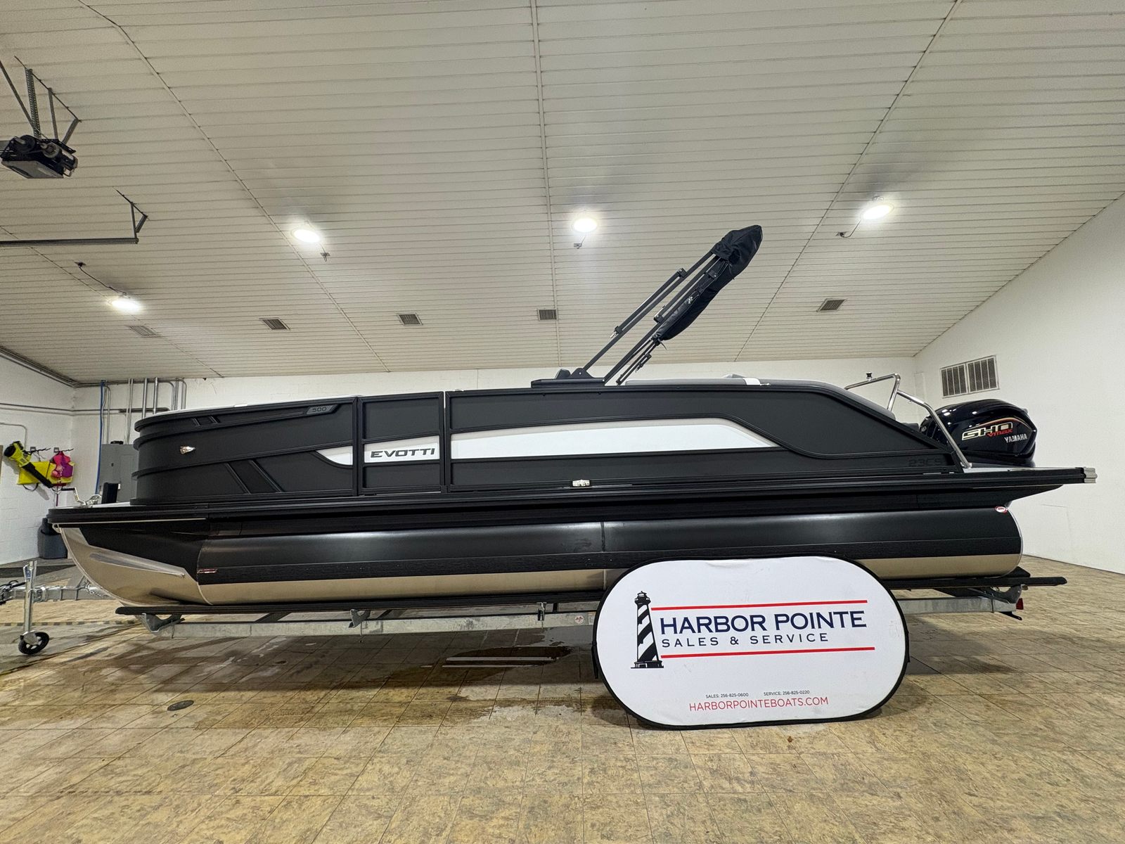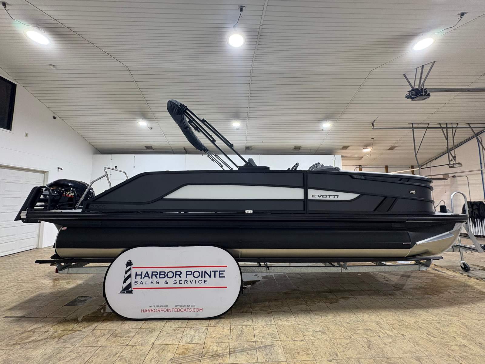 The 2026 Evotti 523 CS Pontoon is a testament to modern craftsmanship and innovation. Measuring an impressive 25.5 feet in length, this pontoon offers ample space for relaxation, entertainment, and adventure. The contemporary design is highlighted by the Panel Diamond Black Satin exterior, accented with a striking Panel Accent Pearl White Gloss, creating a sophisticated and eye-catching profile that stands out at any marina or lakeside gathering. The new condition ensures that every detail, from the flooring to the upholstery, is pristine and ready for immediate enjoyment.