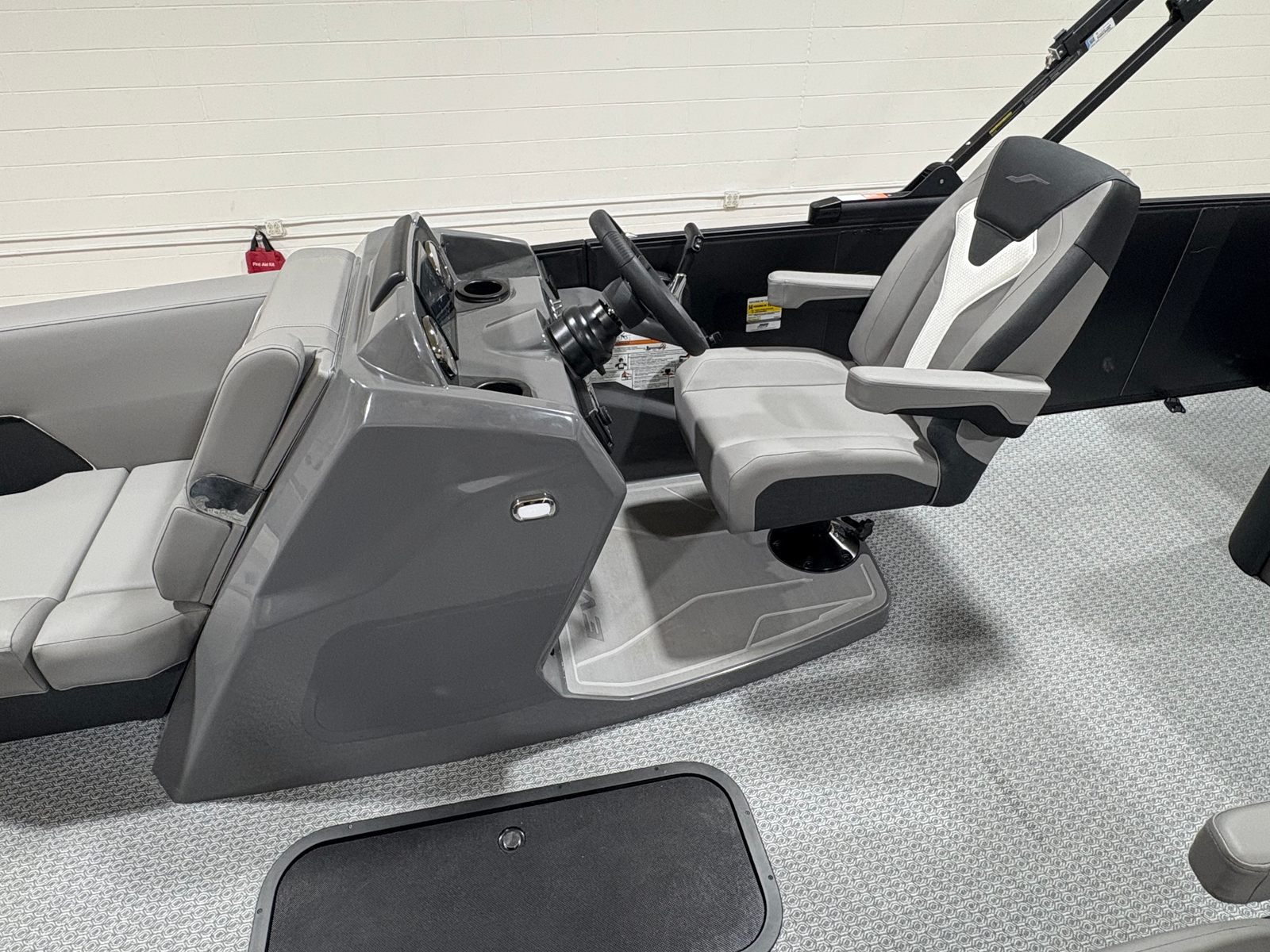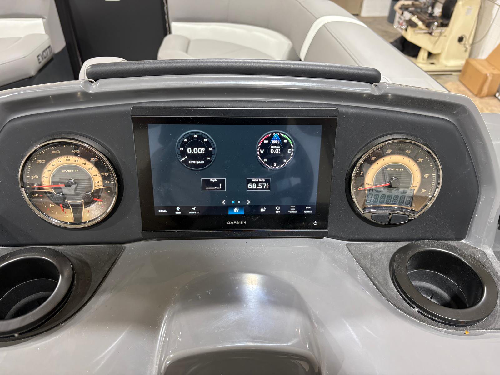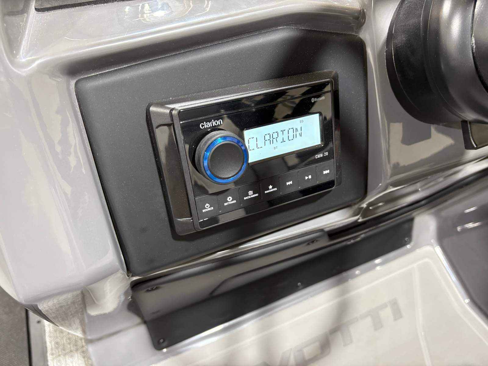 The Evotti 523 CS is thoughtfully equipped with a range of premium features designed to enhance comfort, convenience, and style. The Canvas Black canopy offers shade and protection from the elements, allowing you to enjoy the outdoors in any weather. Inside, the Base Vinyl Steel Gray upholstery provides a modern and inviting atmosphere, perfectly complemented by the Steel Gray Evolution Flooring, which is both durable and easy to maintain. The Battery Dual system ensures reliable power for all your onboard electronics and accessories, giving you peace of mind during extended outings. Every detail, from the color accents to the advanced rigging, reflects Evotti’s commitment to quality and innovation.