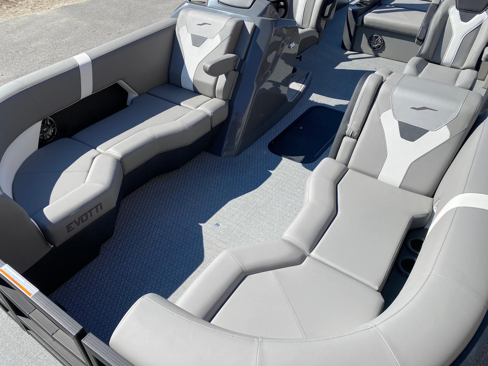 The Evotti 523 CS pontoon is the ultimate choice for a wide range of boating adventures. Planning a family outing? The spacious seating and open layout make it easy to bring everyone along for a day of swimming, picnicking, and exploring. Love to entertain? The stylish design and comfortable amenities create the perfect atmosphere for hosting friends and celebrating special occasions.For those who crave relaxation, the 523 CS offers a peaceful retreat where you can unwind, listen to your favorite music, or simply enjoy the beauty of nature. Anglers will appreciate the stability and space for casting a line, while thrill-seekers can take advantage of the powerful Yamaha engine for towing tubes or water skis. No matter your passion, this Evotti boat for sale is ready to deliver unforgettable experiences on the water.