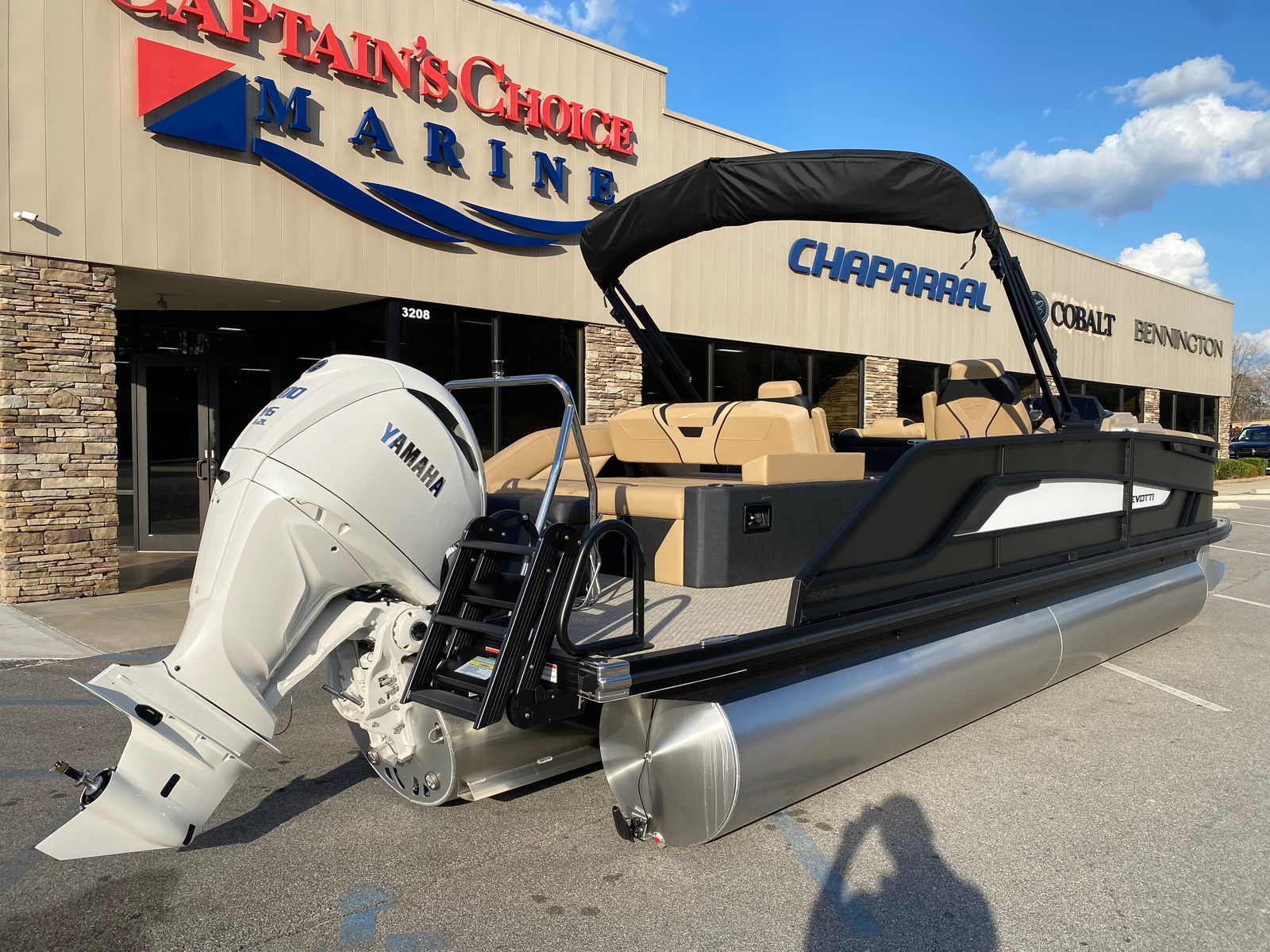 Powering the Evotti 723 CS is a robust Yamaha F300XSB2 engine in a striking white finish. With 300 horsepower at your command, this pontoon boat delivers exhilarating acceleration, smooth cruising, and reliable performance for all your aquatic adventures. The integrated Yamaha steering system, specifically the 700 Series prerig, ensures precise handling and effortless maneuverability, whether you are navigating tight docks or open waters. The single engine rigging and prop are expertly matched to maximize efficiency and responsiveness, giving you confidence and control every time you take the helm.