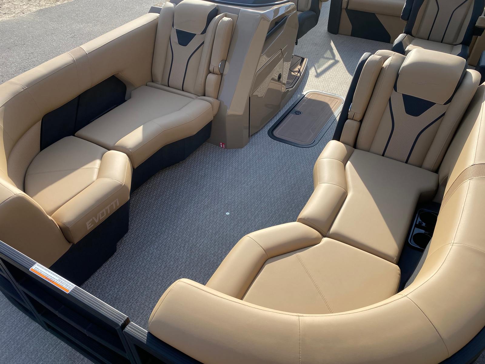 Owning the Evotti 723 CS pontoon means embracing a lifestyle of fun, relaxation, and social connection. The spacious deck layout provides plenty of room for family and friends to spread out, lounge, and enjoy the ride. The plush seating and thoughtfully designed floor plan make it easy to transition from sunbathing to dining or from swimming to socializing. The stylish finishes and high-quality materials create an inviting atmosphere that encourages everyone to unwind and make lasting memories.The advanced entertainment system keeps the energy high and the good times rolling, while the wide display ensures you have all the information you need for a safe and enjoyable trip. The combination of power, comfort, and technology makes this Evotti boat for sale a top choice for those who want the best of both worlds – thrilling performance and luxurious amenities.