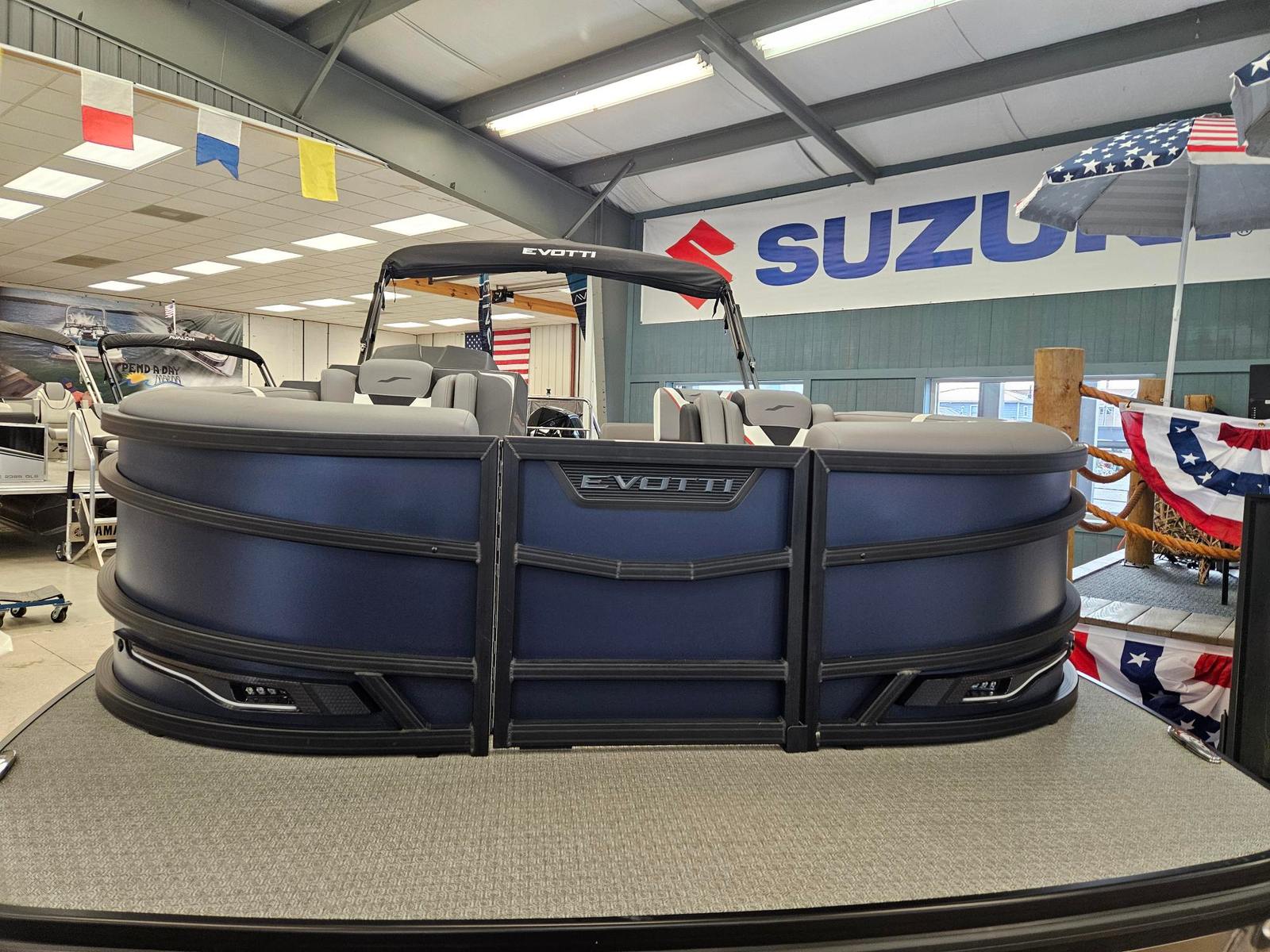 The 2026 Evotti 723 QL pontoon boat is a true standout in its class, combining powerful performance, luxurious features, and practical design in one stunning package. With its striking Panel Titanium Silver Gloss and Panel Accent Platinum Blue Satin exterior, comfortable Base Vinyl Steel Gray seating, advanced 15" Ultra Wide Display, and robust Mercury 250XL engine, this pontoon is ready to deliver endless fun and adventure on the water.If you are searching for a "pontoon boat for sale" or an "Evotti boat for sale," the 723 QL is an exceptional choice that promises years of enjoyment, comfort, and unforgettable memories. Don’t miss your chance to own this remarkable new pontoon boat—contact your local dealer today to learn more and schedule a viewing. Your next great adventure awaits with the Evotti 723 QL!