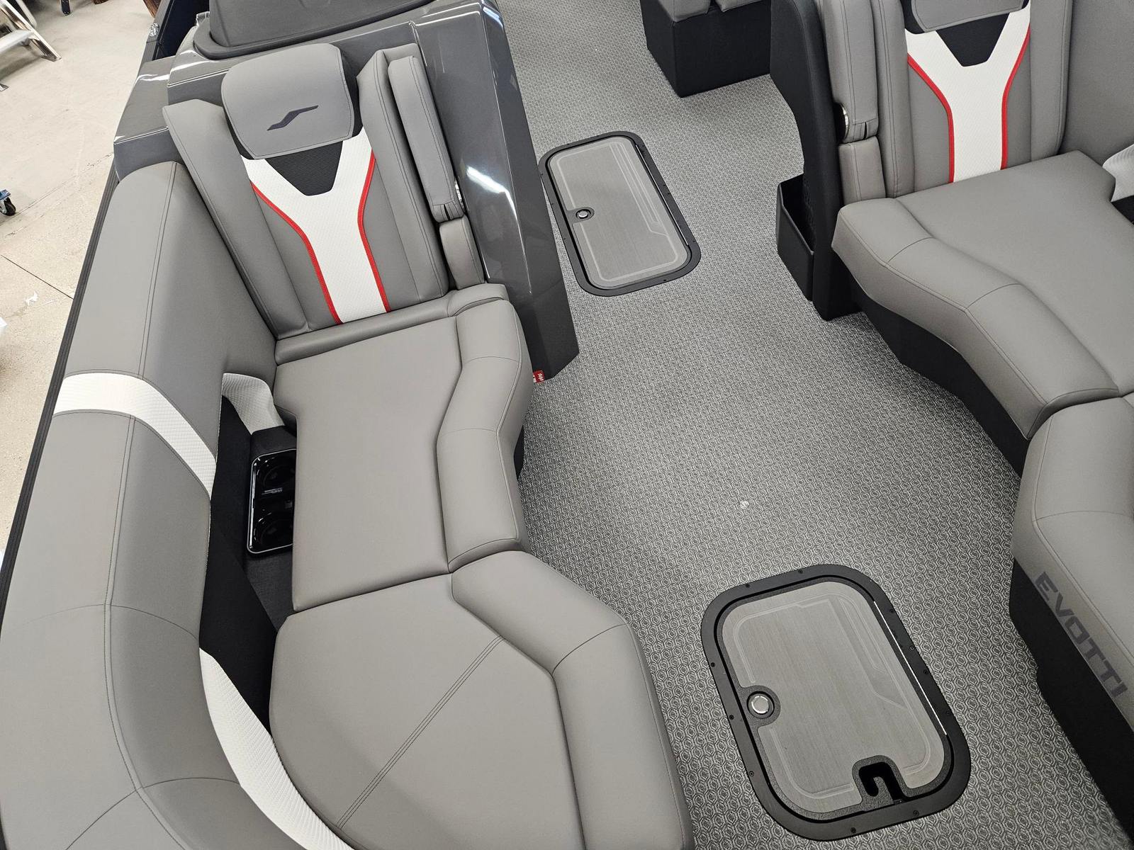 The Evotti 723 QL is packed with premium features designed to enhance your time on the water. The Panel Titanium Silver Gloss and Panel Accent Platinum Blue Satin create a head-turning exterior, while the Canvas Black provides shade and protection. Inside, the Base Vinyl Steel Gray upholstery is both comfortable and durable, perfectly complemented by the Steel Gray Evolution Flooring, which offers a non-slip, easy-to-clean surface.One of the standout features is the Port Bench with Omni Chaise 723QL, providing versatile seating options for lounging, socializing, or simply soaking up the sun. The 15" Ultra Wide Display puts navigation and system controls at your fingertips, making it easy to monitor your boat’s performance and stay informed while underway. Every detail of the Evotti 723 QL has been thoughtfully designed to deliver comfort, convenience, and style.