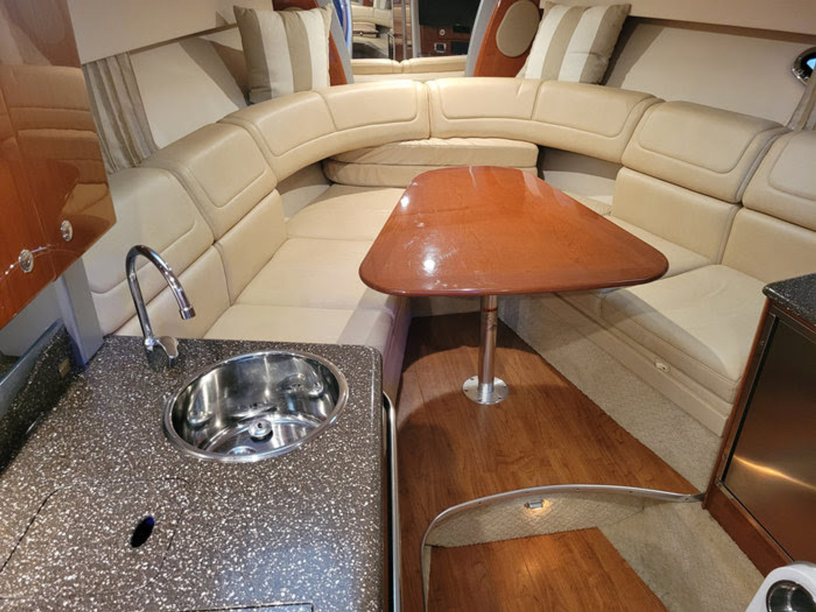 In addition to its recreational appeal, the Formula 350 SS offers practical benefits that make ownership a breeze. The generous storage compartments provide plenty of space for water toys, safety equipment, and personal belongings, keeping the deck clutter-free and organized. Docking is simplified by the boat’s responsive handling and well-designed controls, allowing you to maneuver with confidence in any marina or harbor. Fuel efficiency is another advantage of the Formula 350 SS, helping you make the most of your time on the water without frequent refueling stops. The durable construction and reliable performance mean you can enjoy years of worry-free boating, with minimal maintenance required. Whether you’re planning short day trips or extended excursions, this bowrider boat for sale is equipped to handle a variety of boating lifestyles.