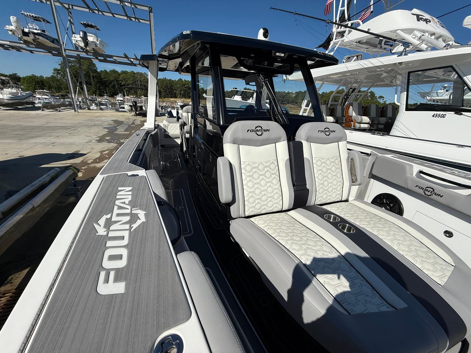 The 2023 Fountain 38 SCX is a 38-foot Center Console boat that embodies the legendary Fountain commitment to innovation and quality. This model is designed to impress, whether you’re cruising along the coastline, heading offshore for a fishing expedition, or enjoying a day of watersports with family and friends. Its striking profile and modern lines make it an eye-catching vessel at any marina, while its robust construction ensures durability and reliability for years to come. As a used Fountain boat for sale, this 38 SCX offers the perfect balance of value and high-end features, making it an attractive option for discerning boaters.