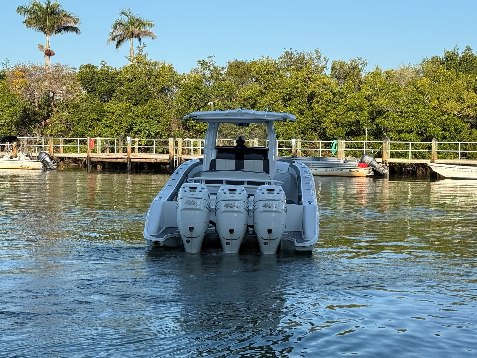 Practicality meets luxury in the Fountain 39 NX. The boat's intelligent design includes ample storage for fishing gear, water toys, and personal belongings, making it easy to keep the deck clutter-free and organized. Docking and maneuvering are simplified by the responsive controls and triple-engine configuration, allowing you to navigate tight spaces with ease. The efficient engine setup also contributes to better fuel economy, so you can spend more time on the water and less time at the fuel dock.The Fountain 39 NX is built for convenience, with features that enhance the overall ownership experience. From the easy-to-access helm station to the spacious walkways and comfortable seating, every detail is designed to make your time on the water as enjoyable and stress-free as possible. Whether you are heading out for a quick sunset cruise or planning an all-day adventure, this center console boat adapts to your needs with style and ease.
