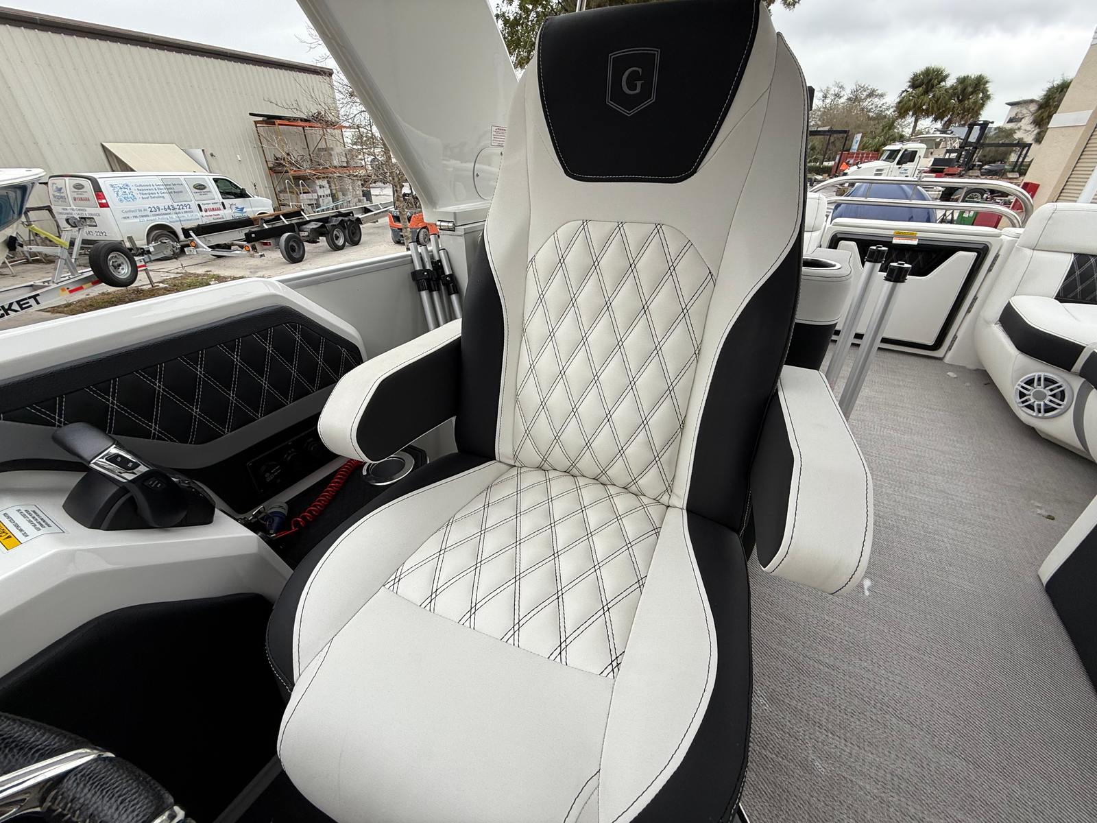 The Godfrey SP 2500 SBC is packed with features that enhance both comfort and functionality. Its spacious 26-foot deck provides plenty of room for socializing, sunbathing, or enjoying a picnic on the water. The pontoon’s layout is thoughtfully designed to maximize seating and movement, making it ideal for entertaining guests or relaxing with loved ones. The high-quality construction and attention to detail are evident throughout, from the plush seating to the durable flooring and stylish accents.This pontoon boat is equipped with a single engine, which not only delivers impressive horsepower but also contributes to fuel efficiency and ease of maintenance. The 2022 model year ensures you benefit from the latest advancements in pontoon design and technology, offering a modern boating experience that is both enjoyable and reliable.
