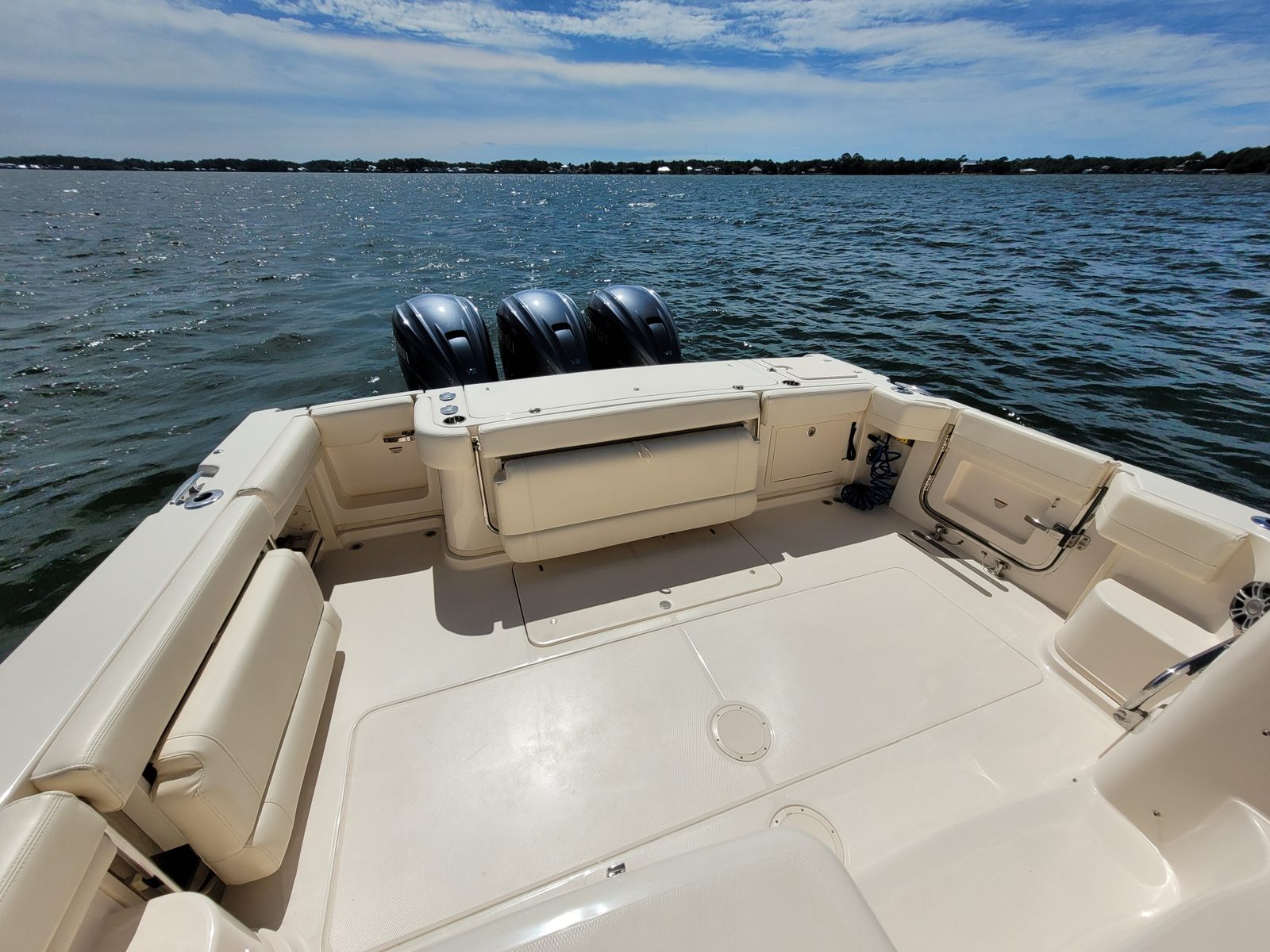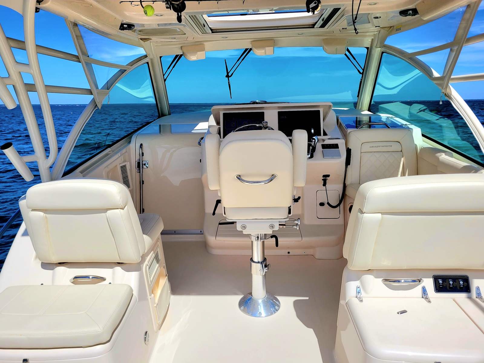 This is a superb example of the classic Grady White 370 Express. This example has been meticulously cared for by its one owner and shows extremely well. Finished in beautiful Ocean Mist Blue and powered by the reliable triple Yamaha F425XTO with Yamaha Warranty thru 10.06.27. Equipped with Helm master joystick with Stay Point and Fish point position hold makes docking and fishing effortless!