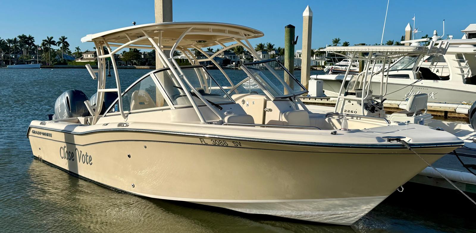 All preowned boat pricing includes financing through Naples Boat Mart with approved credit.