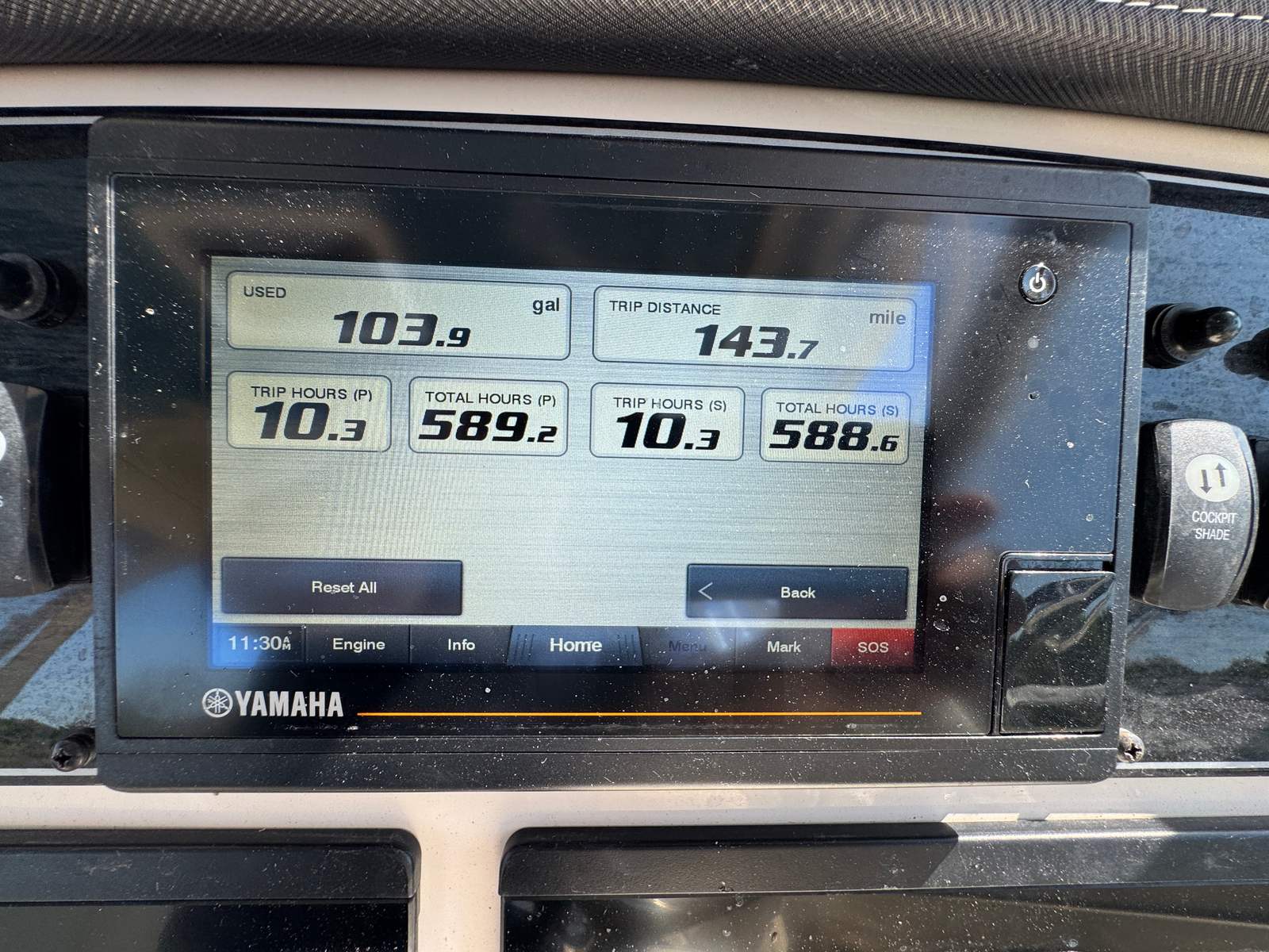 Powering the Grady-White Freedom 307 are two robust engines, delivering a combined 600 horsepower. With 589 engine hours, these motors have proven their reliability and are ready for many more adventures. The dual engine setup ensures smooth acceleration, impressive top speeds, and effortless handling, whether you’re cruising along the coast or heading offshore for a day of fishing. The Freedom 307’s hull design is engineered for stability and efficiency, providing a comfortable ride even in choppy conditions. Experience the thrill of responsive performance and the confidence that comes with owning a Grady-White boat for sale.