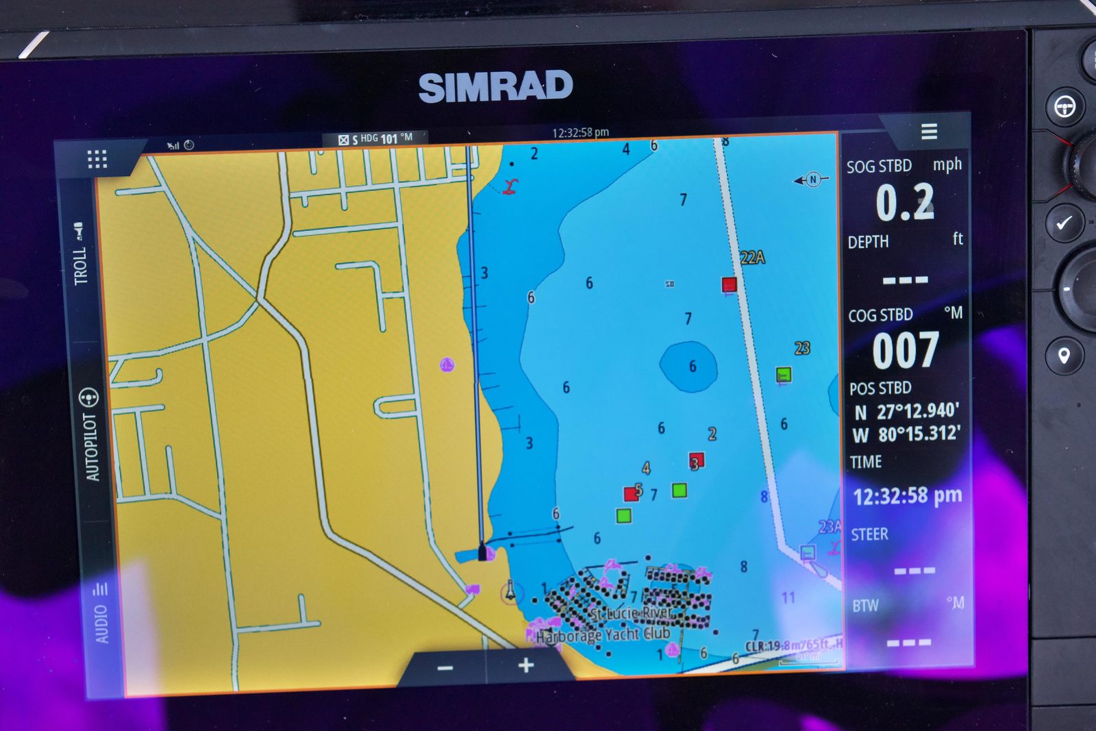 The Grady-White 335 Freedom is packed with features that enhance both functionality and enjoyment on the water. Its dual console layout offers versatility, allowing for easy transitions between cruising, fishing, and entertaining. The spacious cockpit and bow seating areas provide plenty of room for guests to relax and socialize, while the well-designed helm with modern Simrad radar and navigation displays ensures that the captain has everything needed for a smooth and enjoyable ride.This model is known for its high-quality construction and attention to detail, with premium materials used throughout. The overall length offers generous deck space, making it ideal for hosting gatherings or enjoying a peaceful day on the water. The dual console design also provides excellent protection from the elements, allowing you to extend your boating season and enjoy your investment in a variety of weather conditions.