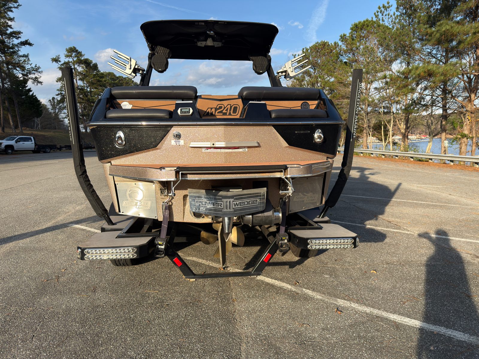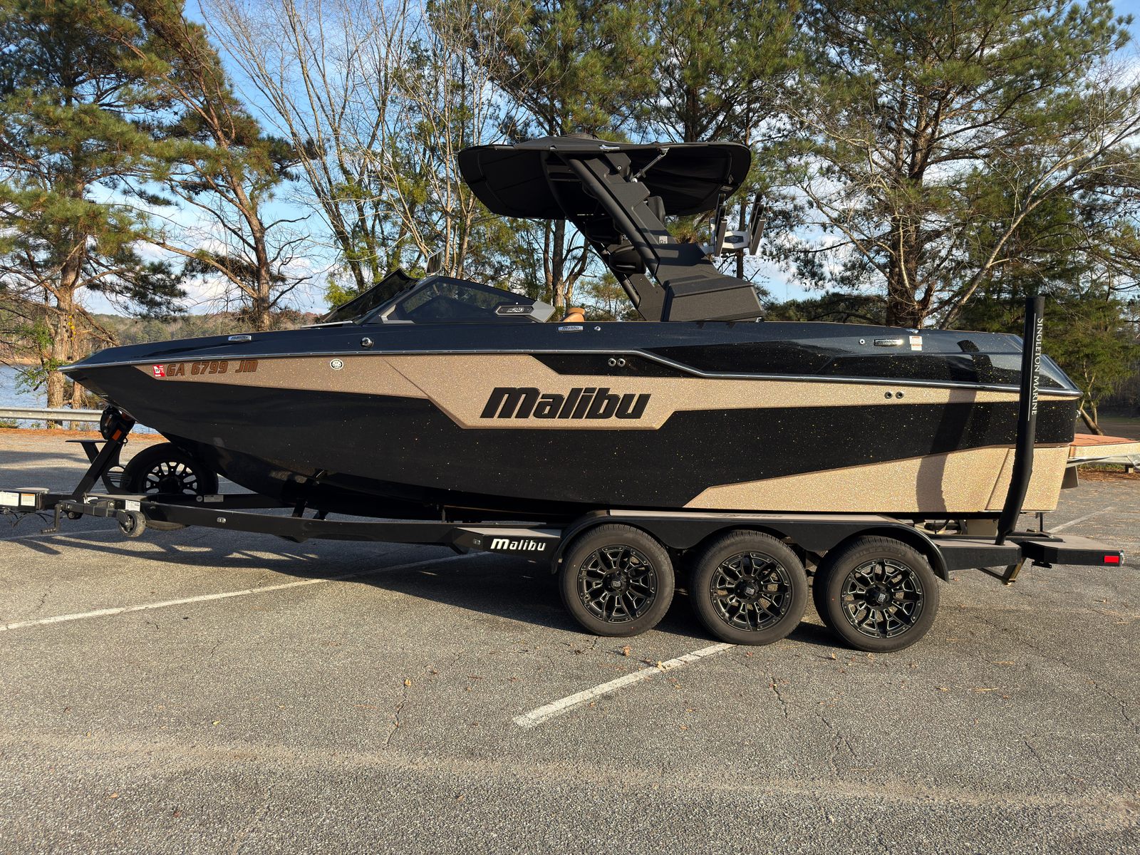 This 2022 Malibu M240 was just traded into us and is ready for its next family to make memories with. The M240 is the baddest of the bad when it comes to wake surfing. You have to see this boat in action! Notable features include: -Monsoon LT4 engine (118 hours) -GX Power Tower with mister system -2 pairs of WETSOUNDS Rev 10s on the tower -TWO 12 inch subwoofers -5 outlet heater system -Rear thruster -Power helm seat -Flip down swim step -Wakeview bench seat and table -Cool touch interior -Much more to list Price shown includes a triple axle trailer. Price is including financing with Singleton Marine. Extended warranties available and factory warranty available for transfer.