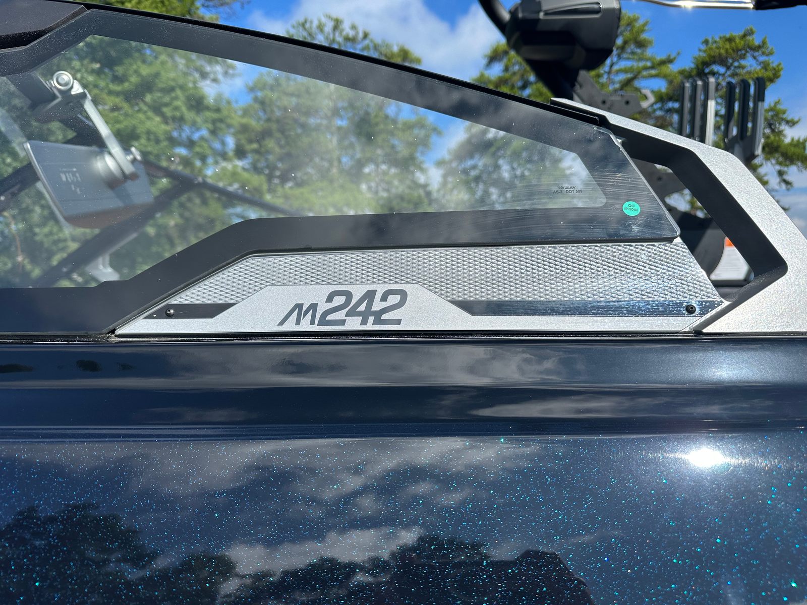 The 2026 Malibu M-Series M242 is packed with innovative features designed to enhance your time on the water. The GL Flip Dual Coverage Bimini provides extensive shade and includes convenient rope and surfboard storage, keeping your gear organized and easily accessible. All composite construction and hand-laid fiberglass ensure superior strength and longevity, while the Deck Trac nonskid complete deck kit offers secure footing throughout the boat.Safety is paramount, with a built-in fire suppression system offering peace of mind during every outing. Docking is made effortless with upper and lower LED docking lights, illuminating your path in low-light conditions. For the ultimate surfing experience, the M242 features side pull surfing points on both port and starboard sides, as well as the innovative Surf Gate Fusion with Malibu Surfband, allowing riders to customize their waves with ease. Underwater blue transom lights add a touch of elegance and visibility, while the billet gauge panel provides a stylish and functional command center.