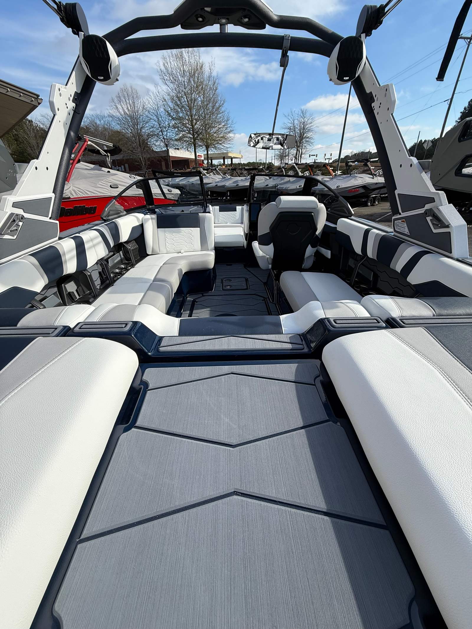 Owning the Malibu Wakesetter 22 MXZ means unlocking a world of fun, excitement, and relaxation. This Ski & Wakeboard boat is designed for maximum enjoyment, with spacious seating and a thoughtfully arranged layout that encourages socializing and comfort. The advanced engine and hull design ensure smooth rides and impressive wake creation, making it perfect for wakeboarding, skiing, and surfing. The integrated storage solutions, including the GL Flip Dual Coverage Bimini, keep your equipment organized and easily accessible, so you can focus on the fun without worrying about clutter.The premium sound system enhances every moment, allowing you to set the mood and keep the energy high. The boat’s stylish graphics and modern aesthetics ensure you’ll always make a statement, whether you’re hosting a party or enjoying a quiet sunset cruise.