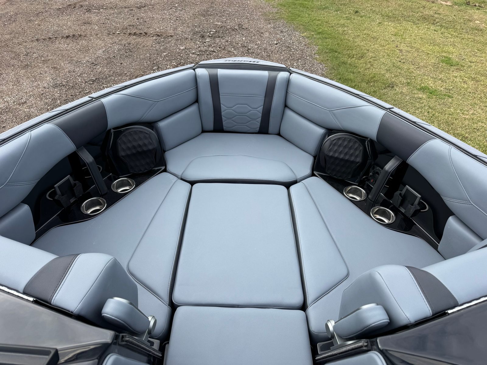 The Malibu Wakesetter 23 LSV is designed with practical features that make ownership a breeze. The CS Boat Cover w/APS 3 and Swimboard Cover protect your investment from the elements, while the PTM Dual Coverage Bimini keeps gear organized and easily accessible. The heater with three outlets extends your boating season, allowing you to enjoy the water in comfort even when temperatures drop. The boat’s thoughtful layout and storage solutions make it easy to stow equipment, refreshments, and personal items, so you can focus on having fun. Docking and maneuvering are simplified by the boat’s responsive handling and balanced design, making it suitable for both experienced captains and newcomers. Fuel efficiency is enhanced by Malibu’s advanced engineering, ensuring more time on the water and less time at the pump.