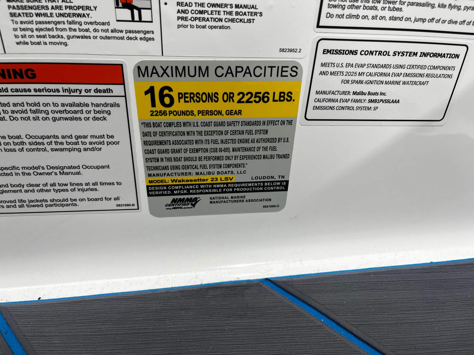 The 2025 Malibu Wakesetter 23 LSV is packed with special features designed to elevate your boating experience. Enjoy deep, resonant sound with the ONE 12-inch subwoofer (with amp), perfect for setting the mood on the water. The 2-outlet heater keeps you and your guests comfortable during early morning rides or cooler evenings, extending your boating season. The innovative MaxPivot Wakeview Bench with Integrated Table offers versatile seating and a convenient space for snacks, drinks, or gear.Standard features like the 175 x 1425 - 2708 configuration and the powerful 250a alternator ensure reliable operation and efficient power management. Three pairs of pull-up cleats make docking and securing your boat effortless, while the interior color upgrade adds a touch of luxury and personalization. The transom remote allows easy control of your audio system from the swim platform, keeping the party going wherever you are on the boat.Ballast HI FLO - Midship eMLS4ffd technology lets you customize your wake for every activity, from surfing to wakeboarding. Stainless cup holders provide durability and style, ensuring your refreshments are always within reach.
