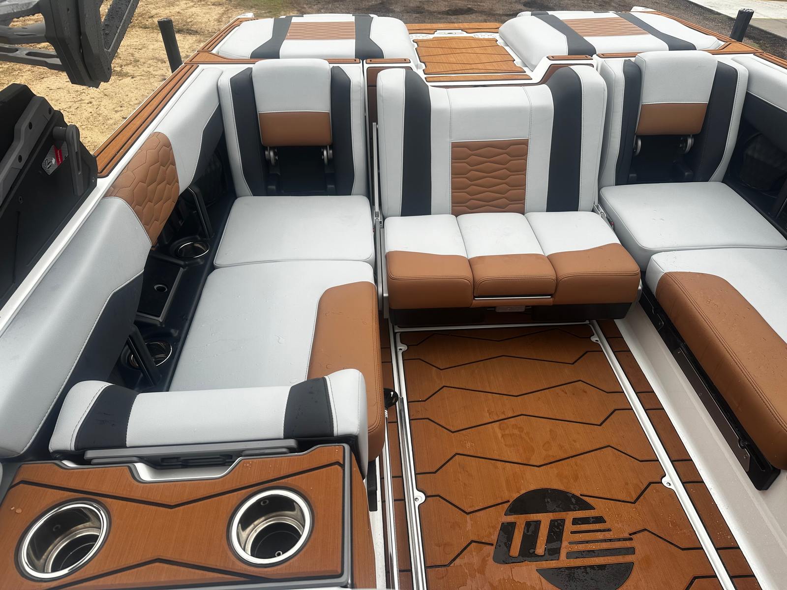 This Ski & Wakeboard boat for sale is loaded with premium features designed to elevate your time on the water. The interior color upgrade creates a luxurious and inviting atmosphere, while the CS Bimini Top - Gen II Surf provides ample shade for those sunny days. The CS Boat Cover with APS 3 and Swimboard Cover ensures your investment is protected when not in use, and the CS Extended Awning offers additional shelter for relaxing between sessions. The three-outlet heater keeps everyone comfortable during cooler mornings or late-season outings, extending your boating season and enhancing overall enjoyment. The Ebony-Wakesetter hull rear and side graphics give the boat a distinctive and stylish look that is sure to turn heads wherever you go.