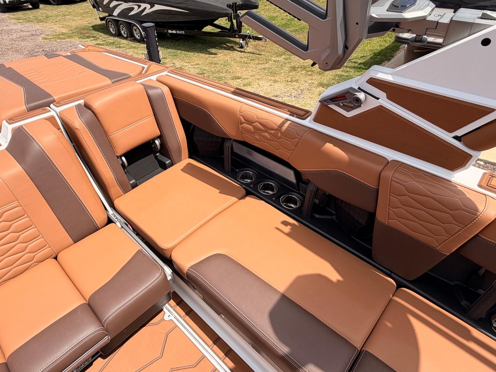 The 2026 Malibu Wakesetter 24 MXZ is loaded with premium features that elevate your boating experience. The exterior and interior color upgrades allow you to showcase your personal style, while the CS Boat Cover with APS 3 and Swimboard Cover provides essential protection for your investment. The PTM Dual Coverage Bimini, complete with rope and surf board storage, offers shade and convenience, keeping your gear organized and within reach. The three-outlet heater ensures comfort during cooler days, extending your boating season and keeping everyone onboard cozy. The distinctive Arctic White-Wakesetter graphics on both the rear and sides add a touch of sophistication and flair, making this Malibu boat for sale a true standout.