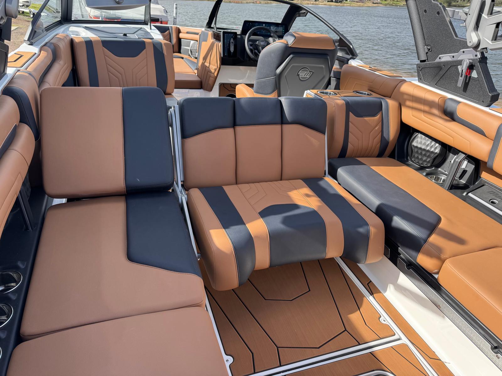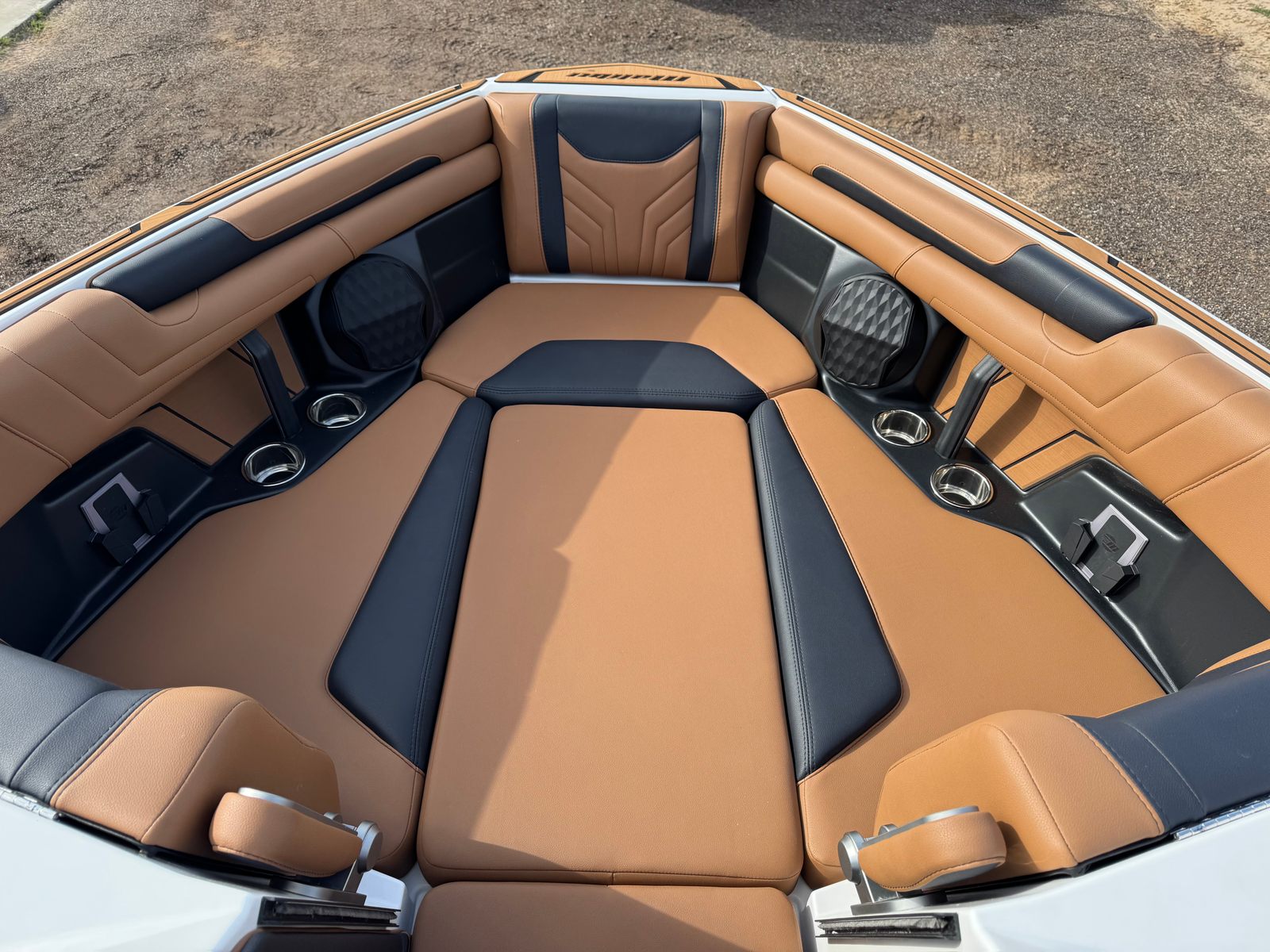 Beyond its impressive performance and style, the Wakesetter 25 LSV is designed with practical boating needs in mind. The CS Boat Cover with APS 3 and Swimboard Cover helps protect your investment from the elements, while the CS Extended Awning and Bimini Top provide shade and comfort during long days on the water. The 3-outlet heater ensures you can enjoy boating in a variety of weather conditions, making this Ski & Wakeboard boat a versatile choice for year-round fun.The Malibu Monsoon M6Di engine is engineered for efficiency and reliability, reducing maintenance concerns and maximizing your time on the water. The 25-foot length offers ample storage for gear, water toys, and personal items, keeping the deck clutter-free and organized. Docking and maneuvering are made easier by the boat’s responsive handling and thoughtful design, allowing you to focus on enjoying your time with family and friends.