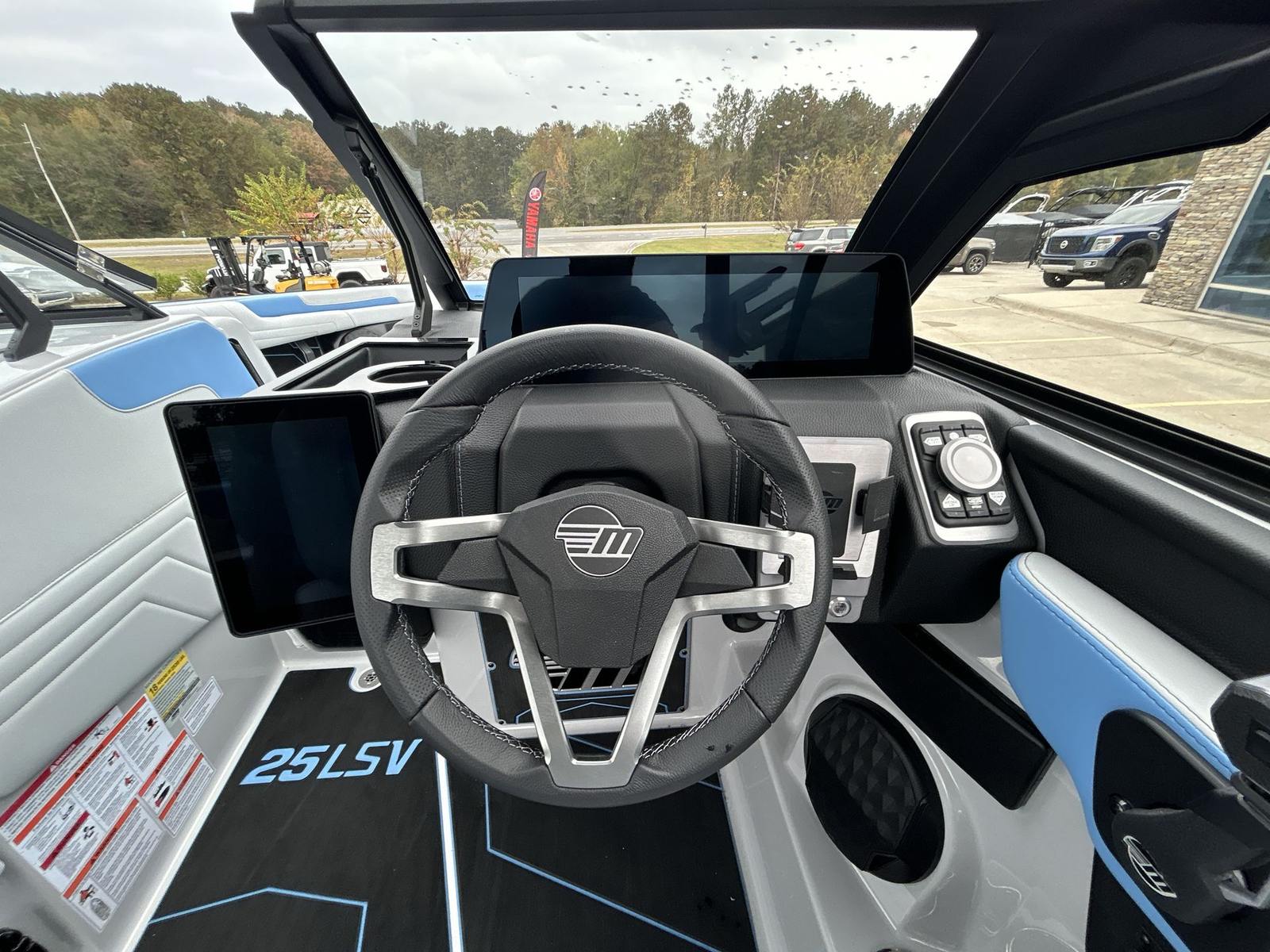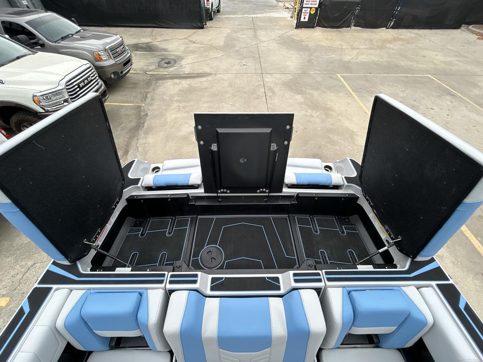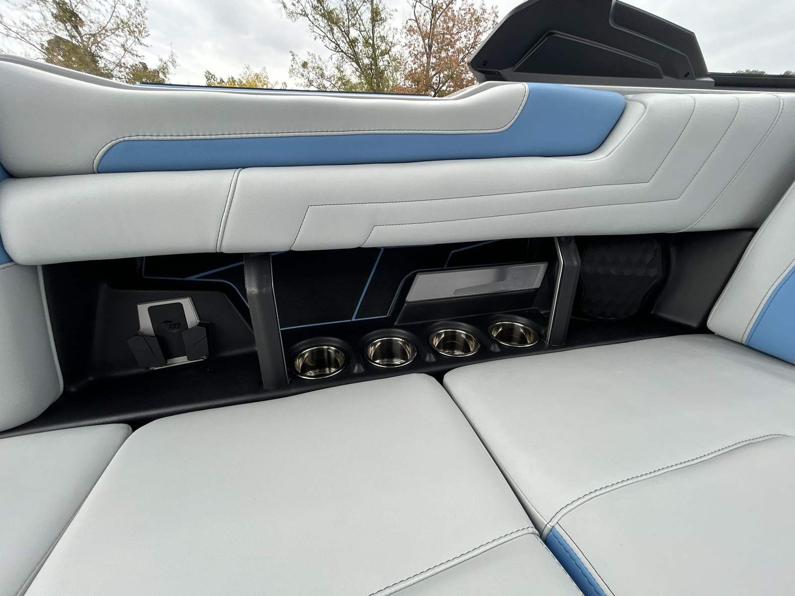 The Malibu Wakesetter 25 LSV is as practical as it is fun. Its generous storage solutions, including surf storage and secure racks, keep your gear organized and accessible. The efficient battery setup supports all your electronic needs, while the ergonomic helm seat and intuitive dash controls simplify navigation and docking. The boat’s design makes it easy to board, disembark, and move around, enhancing safety and convenience for all passengers.Fuel efficiency and low engine hours mean you’ll spend more time enjoying the water and less time worrying about maintenance. The thoughtful layout ensures that every inch of space is utilized, making it simple to stow equipment, refreshments, and personal items. Whether you’re planning a quick outing or an all-day adventure, the Wakesetter 25 LSV adapts to your needs with ease.