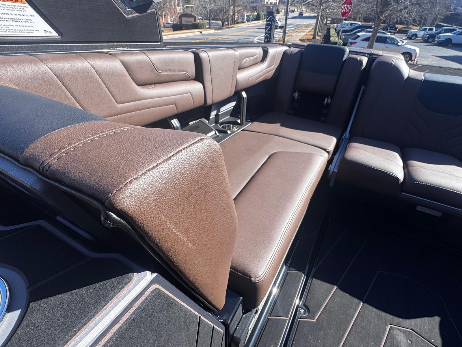 Beyond its performance and entertainment value, the Malibu Wakesetter 25 LSV is designed with practicality in mind. The robust construction and stainless rubrail offer enhanced protection against bumps and scrapes, making docking and maneuvering easier and safer. The advanced ballast system is engineered for quick filling and draining, so you can spend less time preparing and more time enjoying the water.The efficient engine and sound suppression technology contribute to a smoother, quieter ride, reducing fatigue and enhancing comfort during long days on the lake. The Malibu Ascend Tower is not only a visual highlight but also provides practical benefits for storing boards and gear, keeping the deck organized and clutter-free. Whether you are heading out for a quick session or a full day of adventure, the Wakesetter 25 LSV is equipped to handle all your needs with ease.